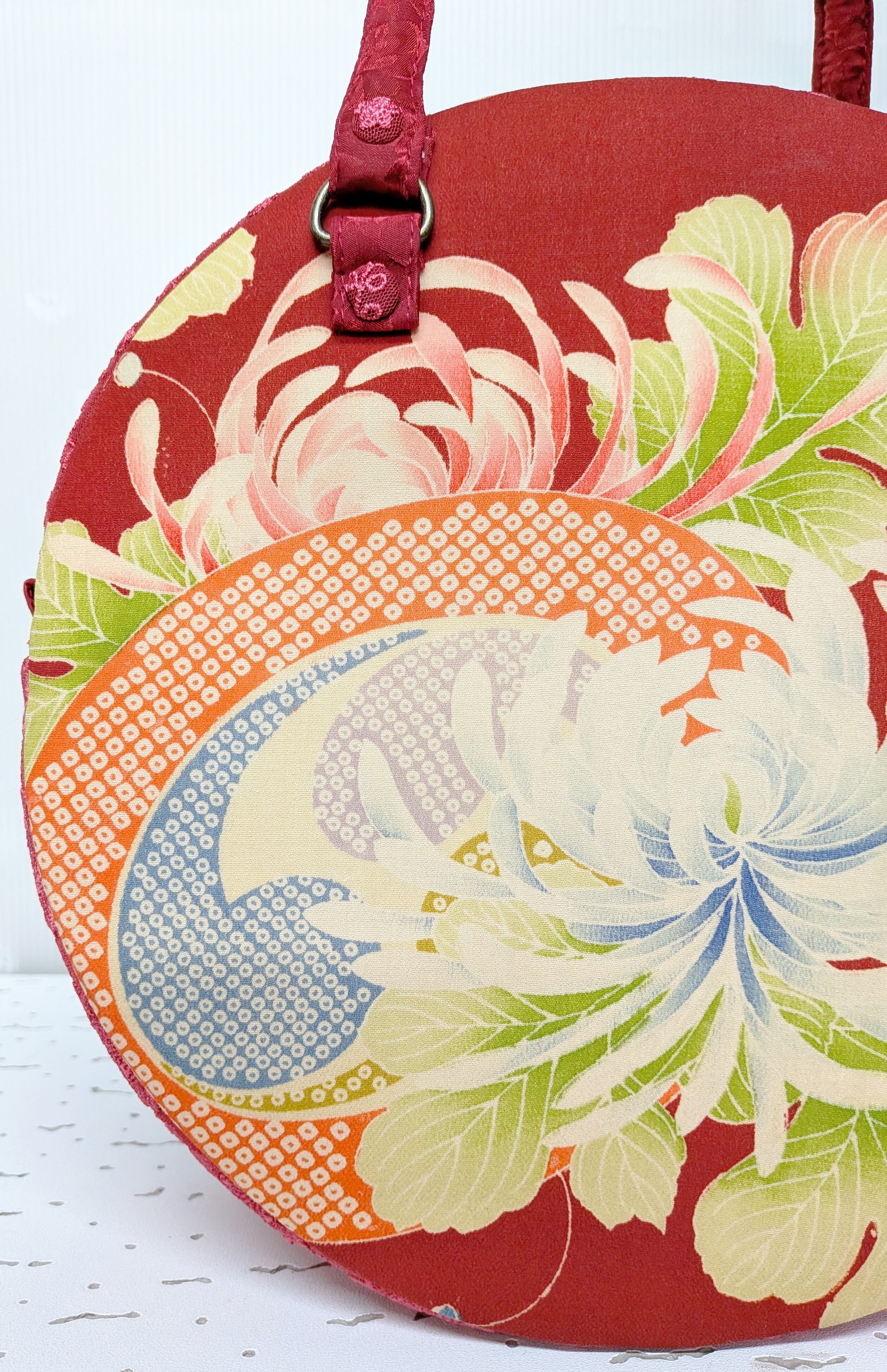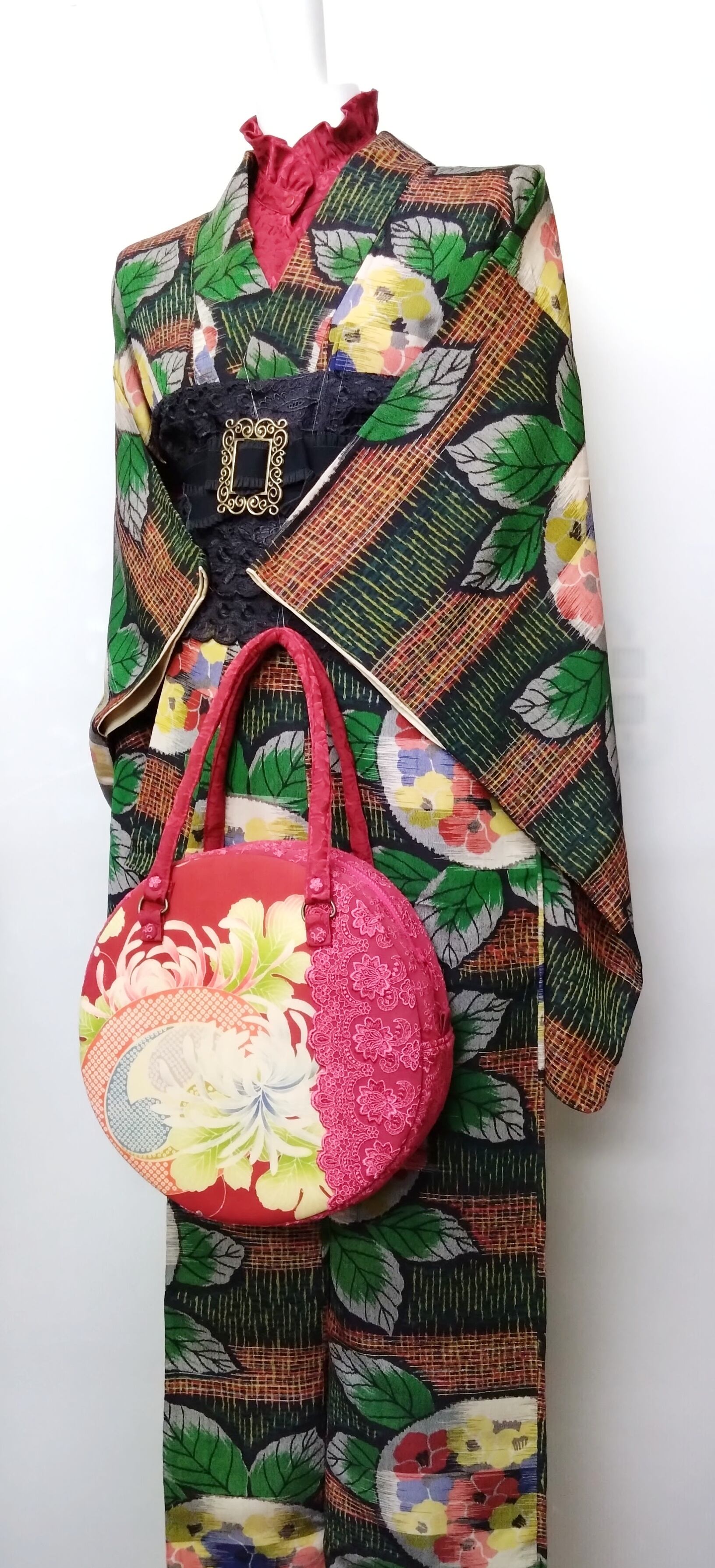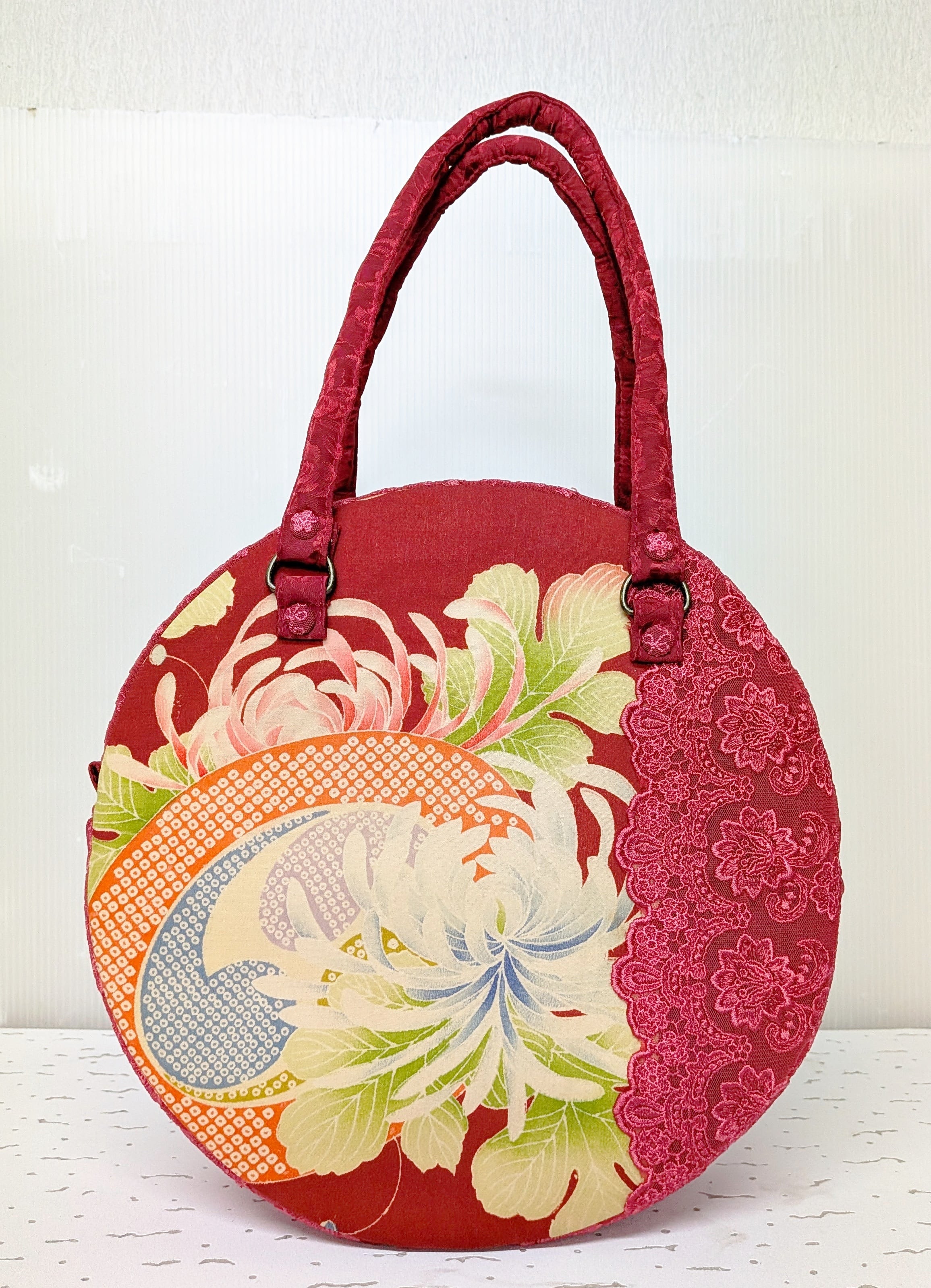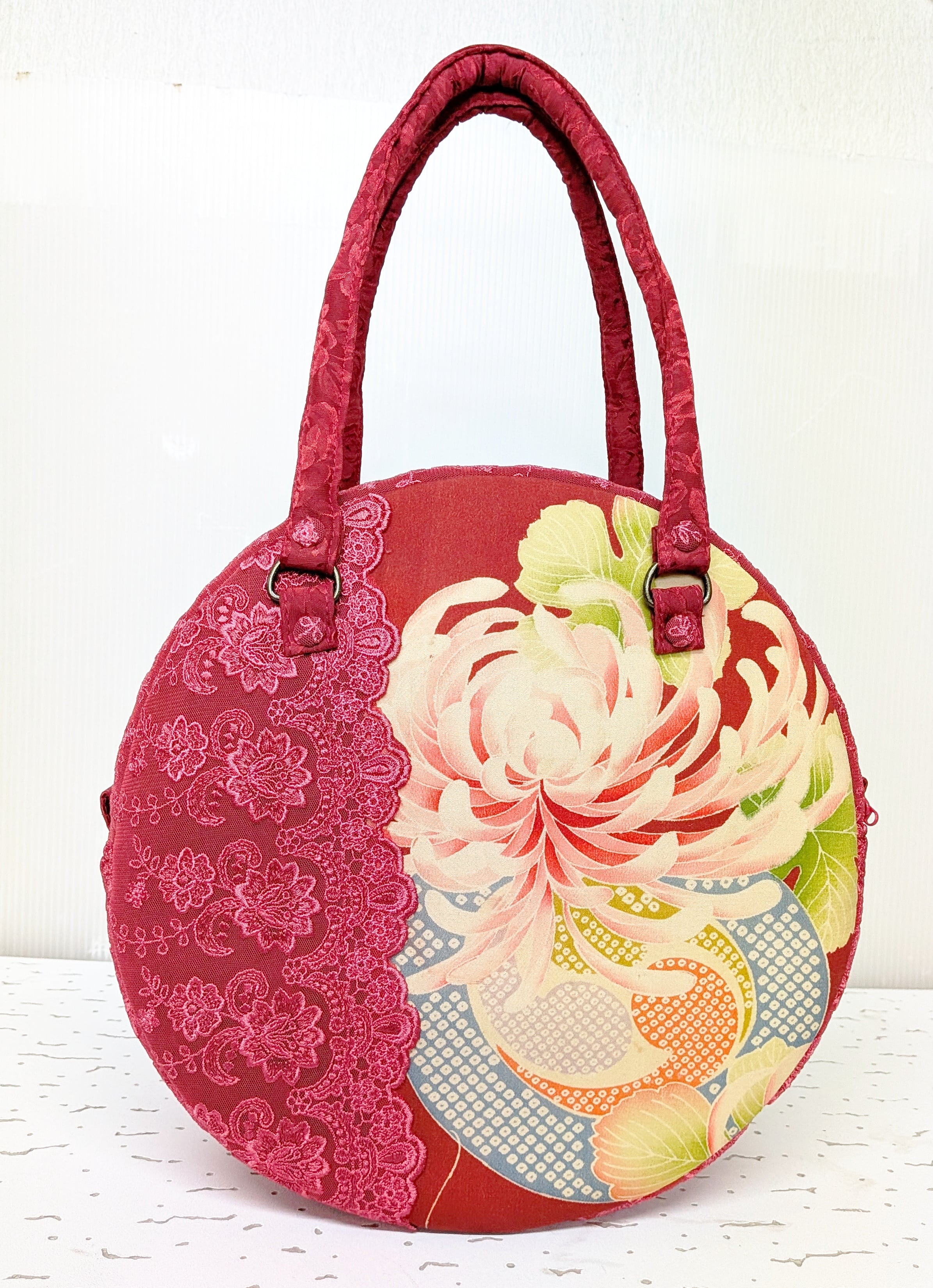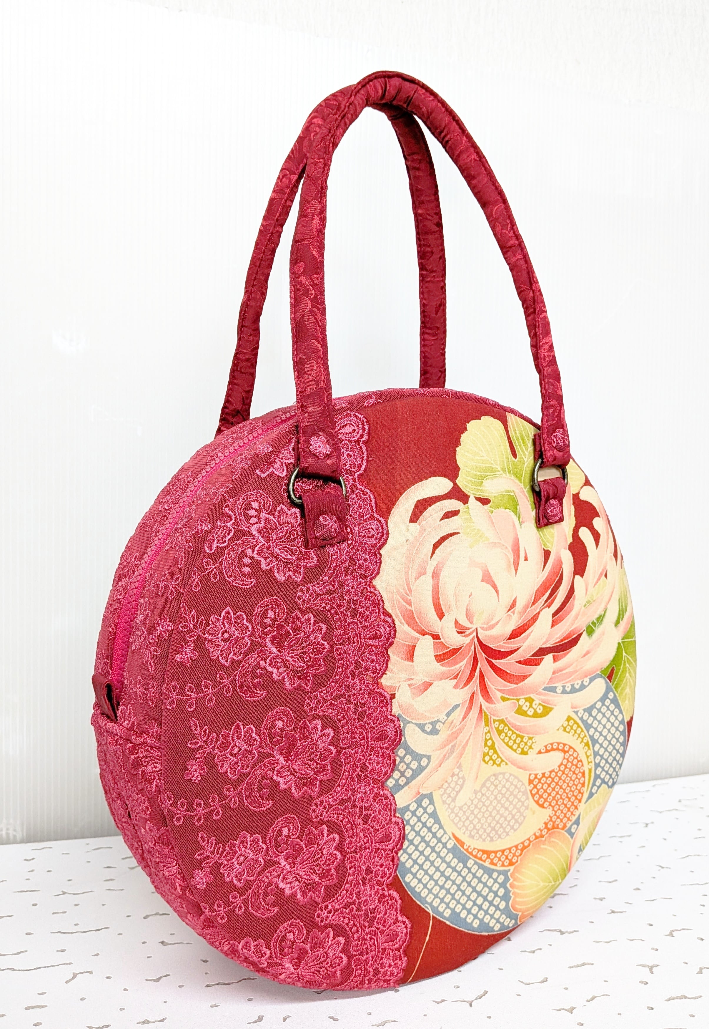 丸型ボストン大 乱菊の着物×マゼンタレース