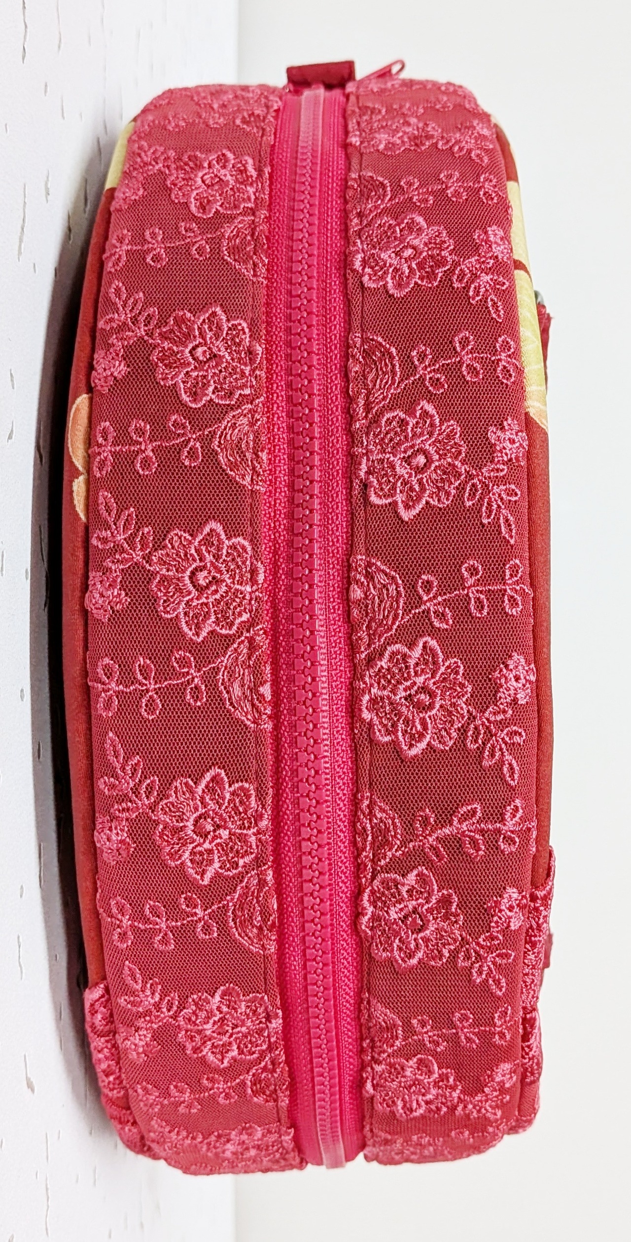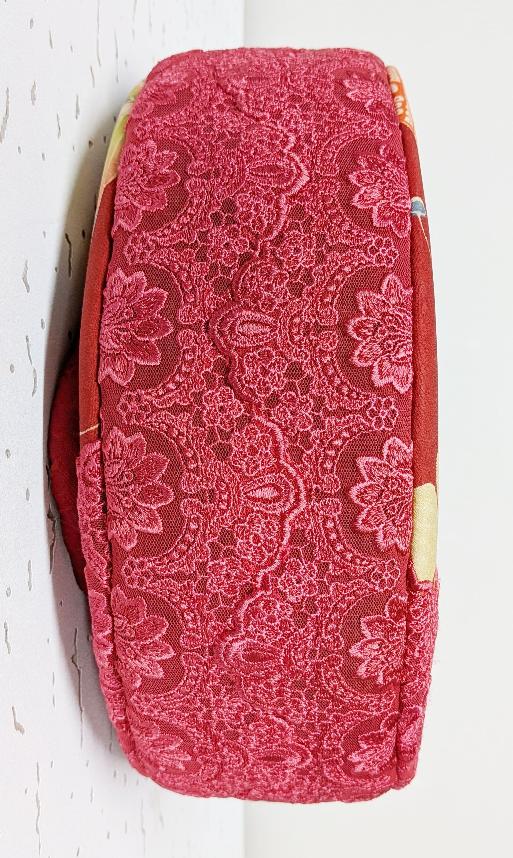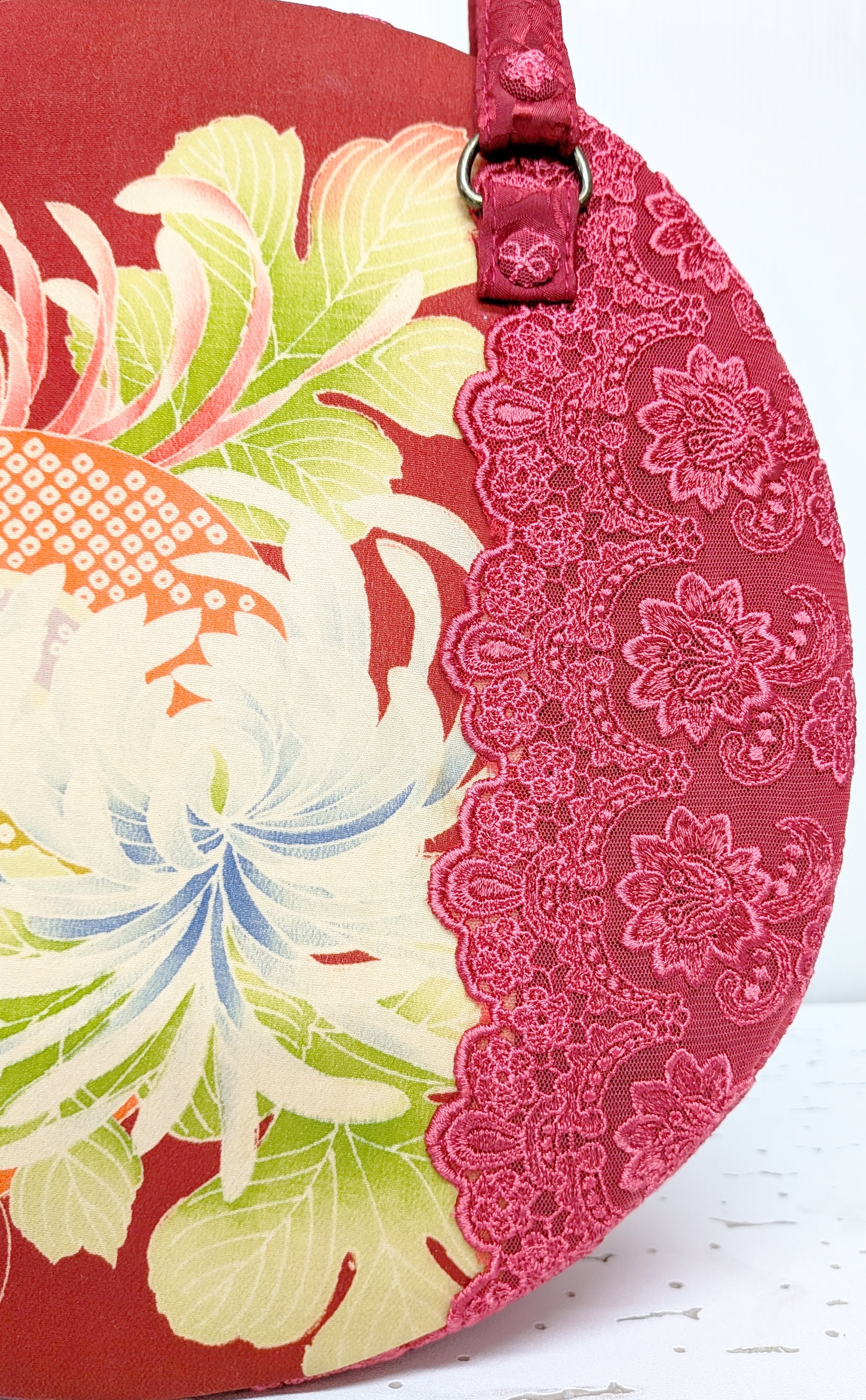 持ち手は赤薔薇柄の古着。