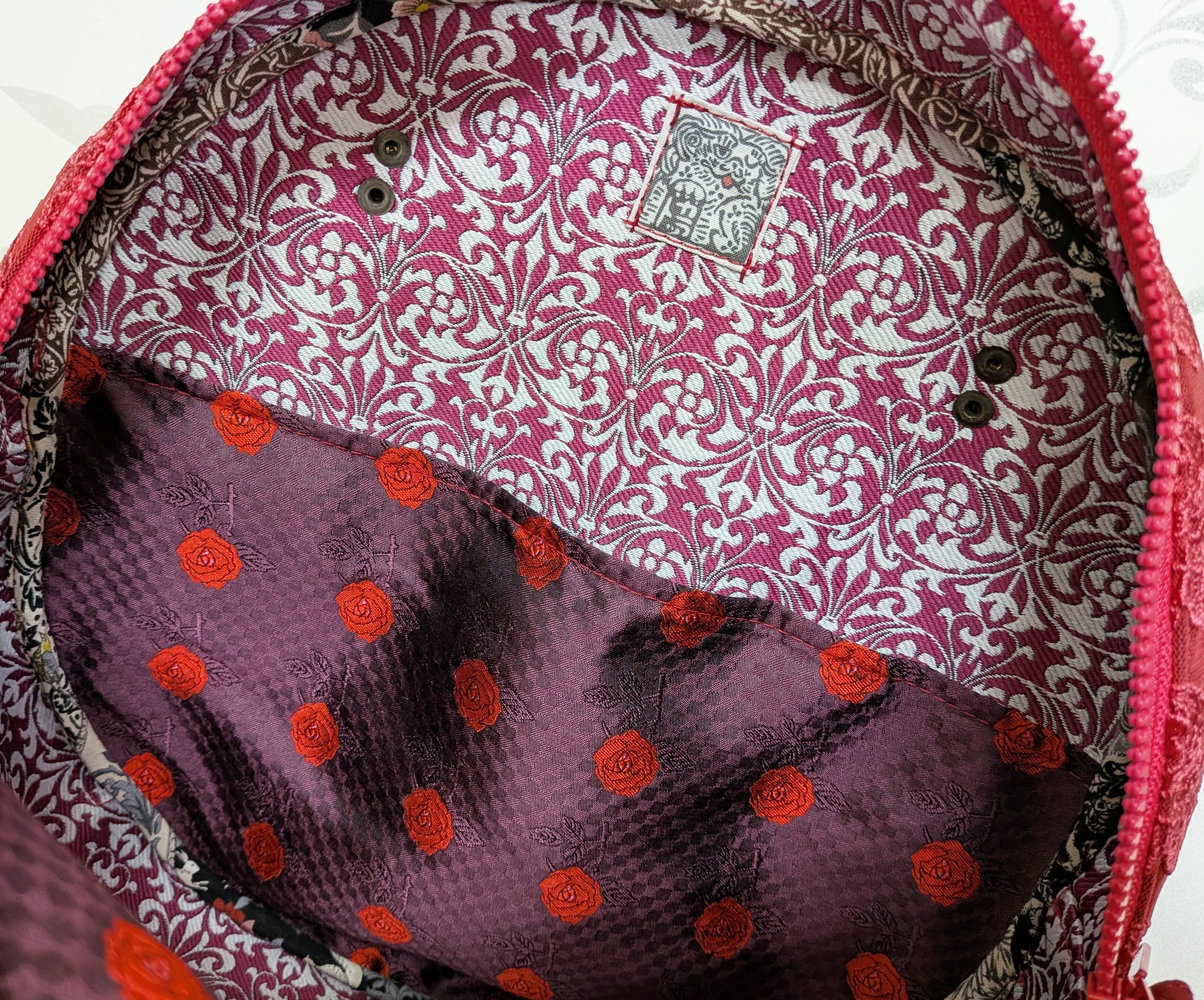 紫地薔薇柄生地のポケットはシルクです。