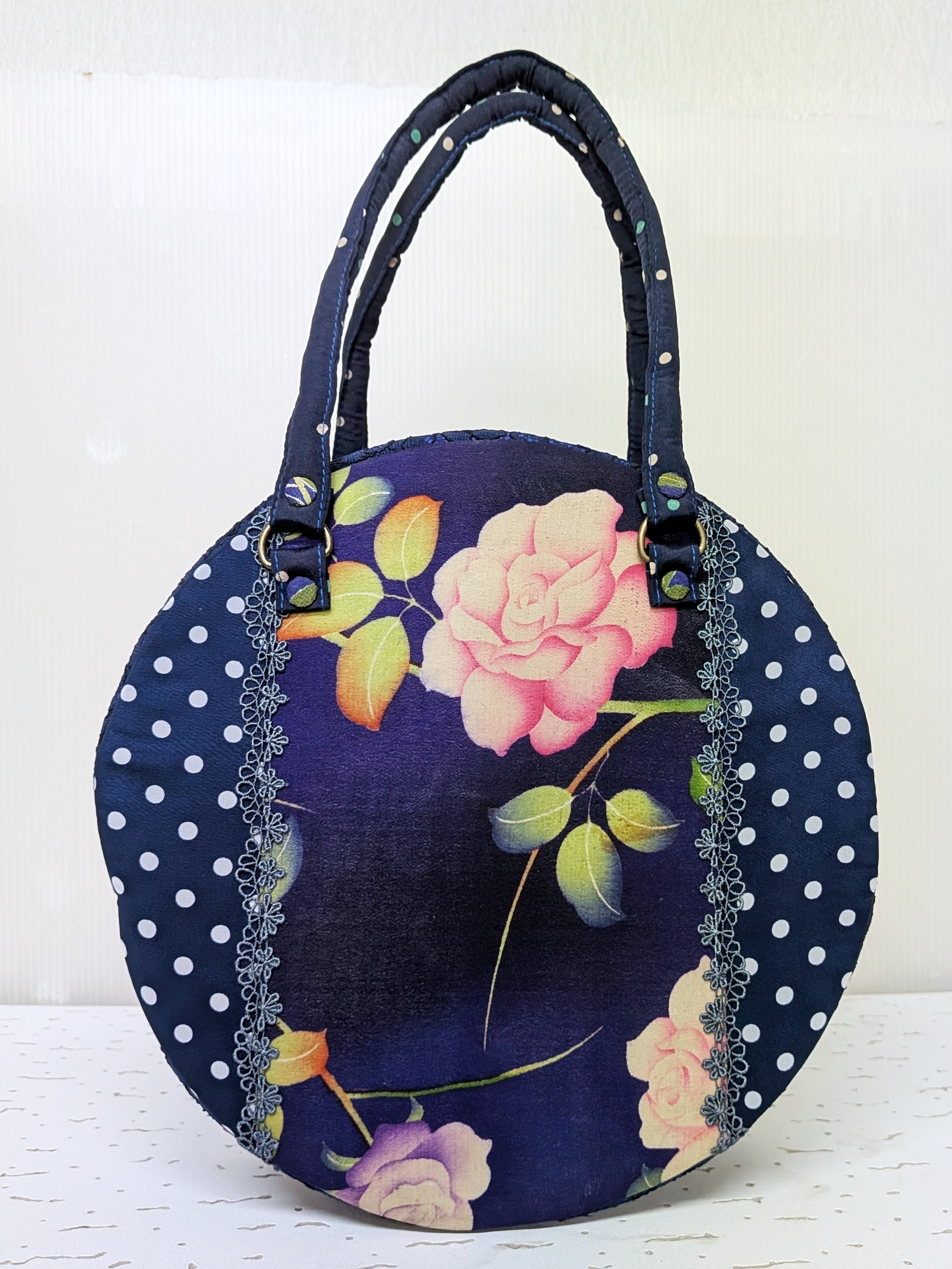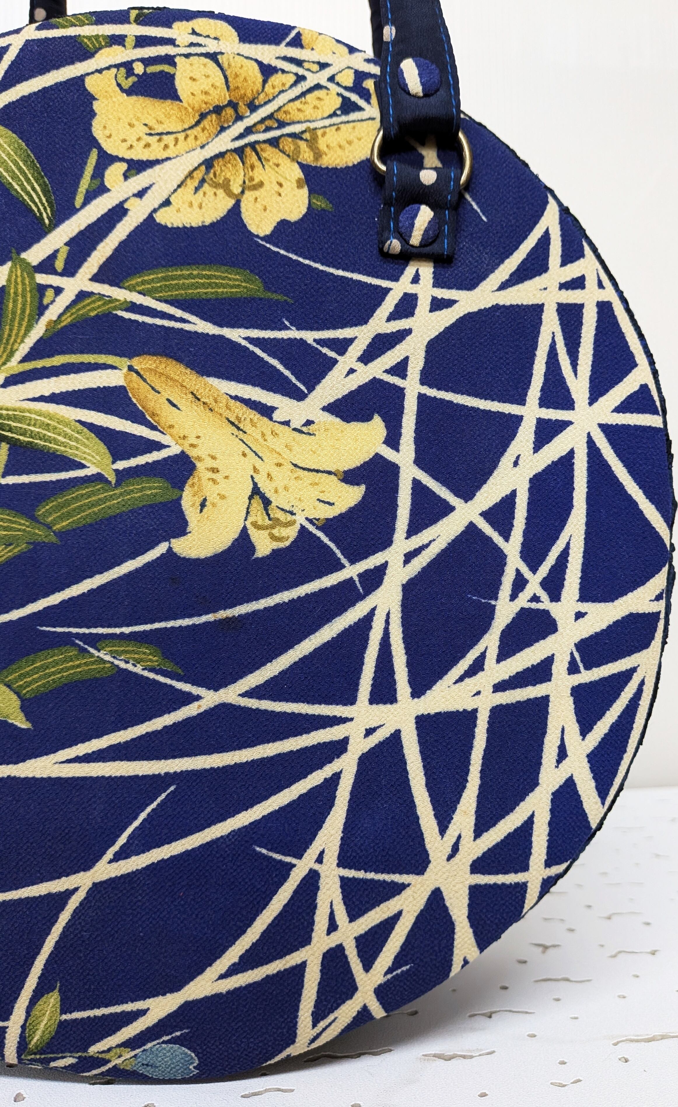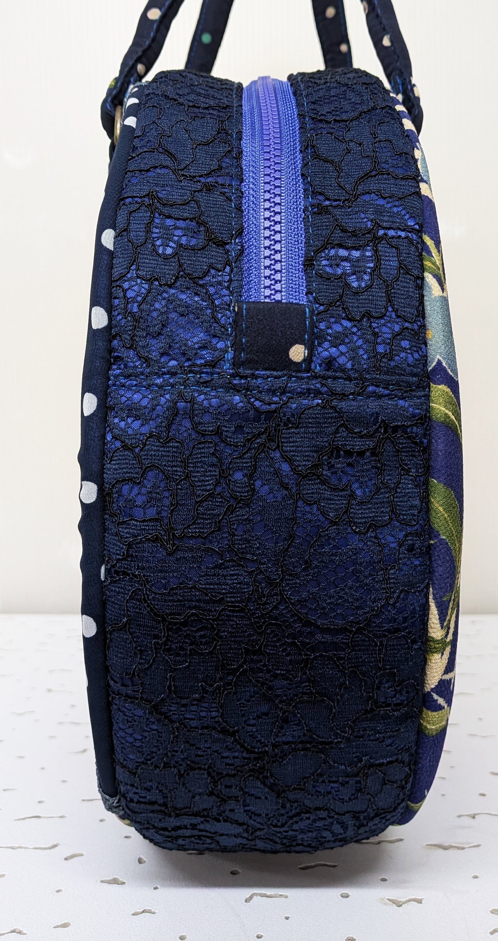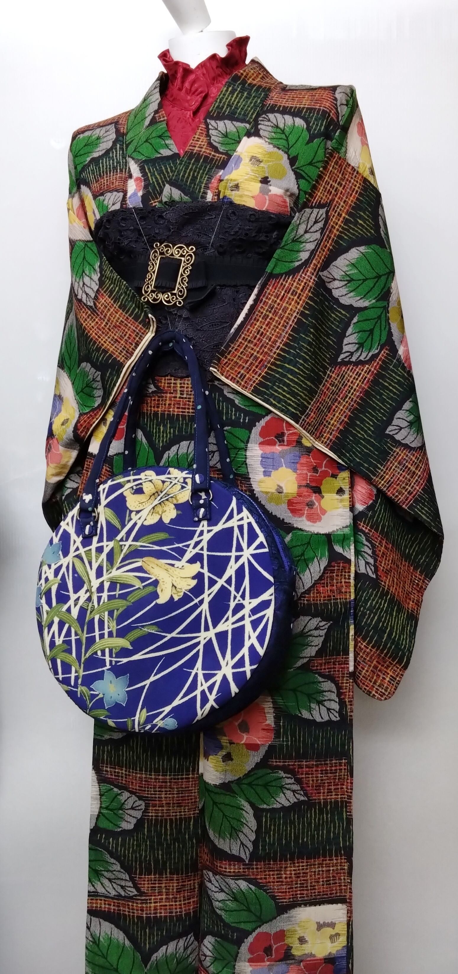 丸型ボストン大 百合と薔薇の着物×紺コードレース