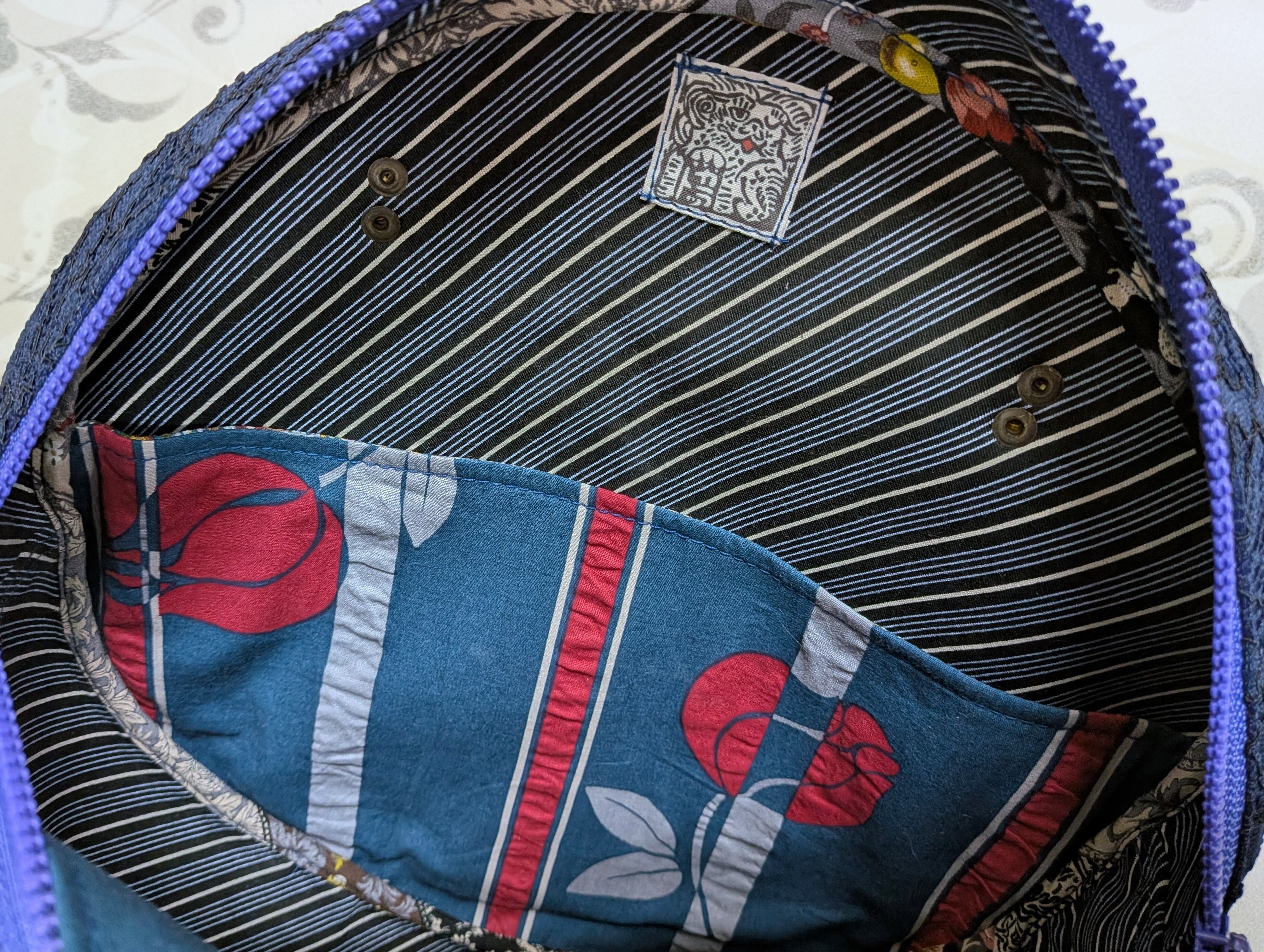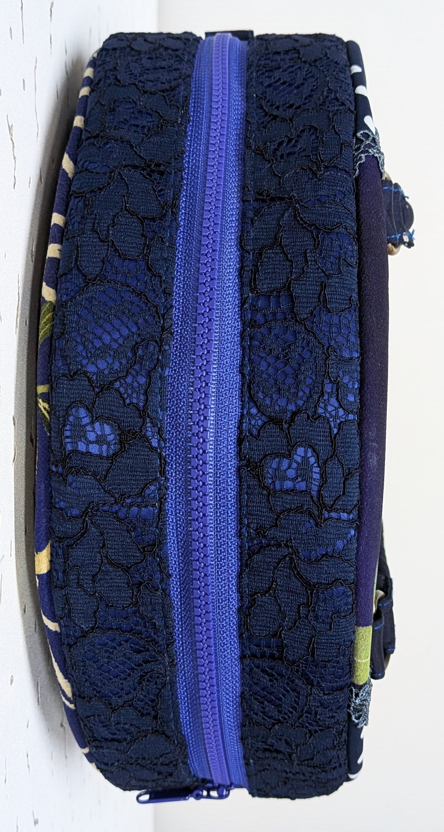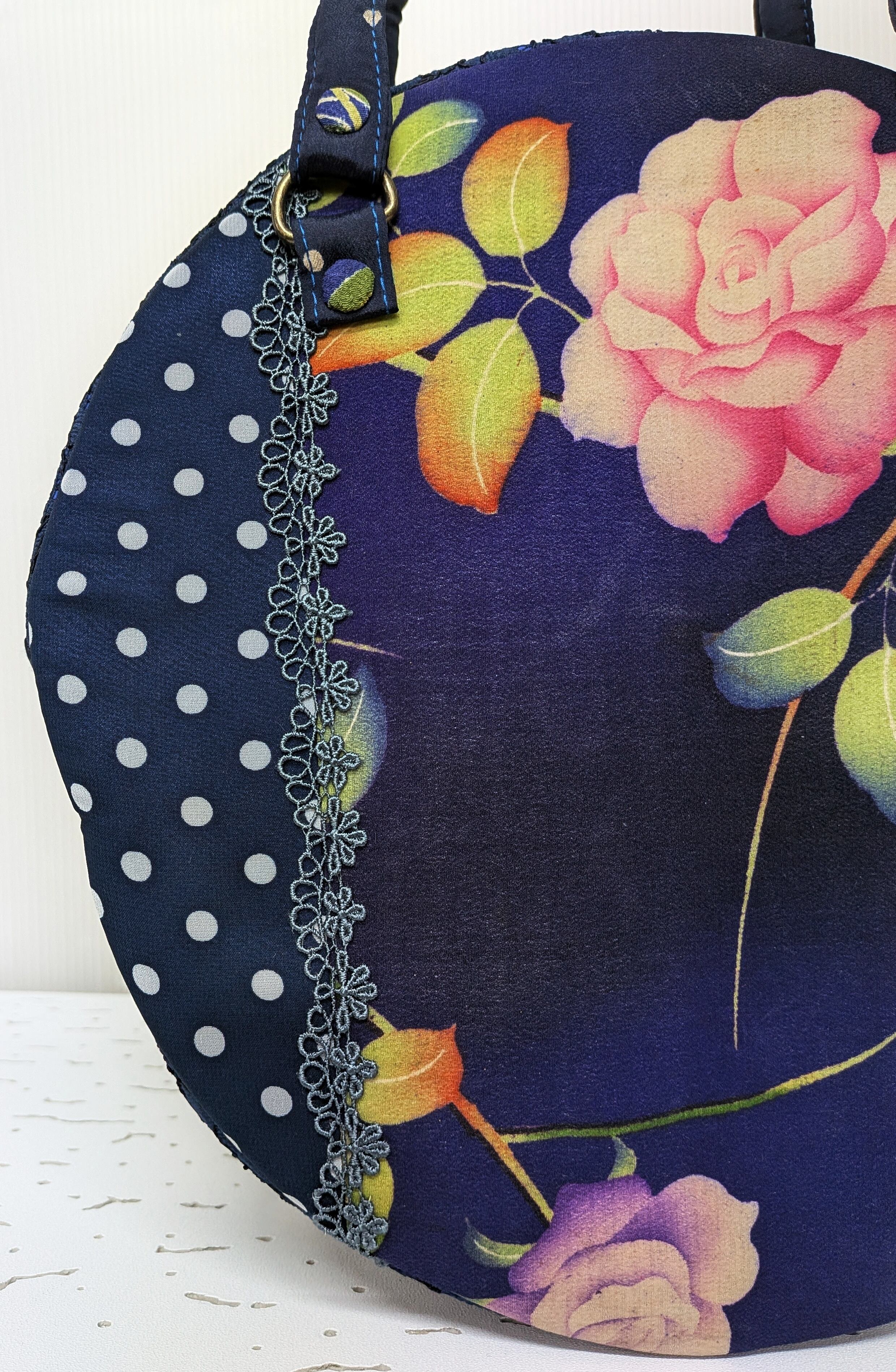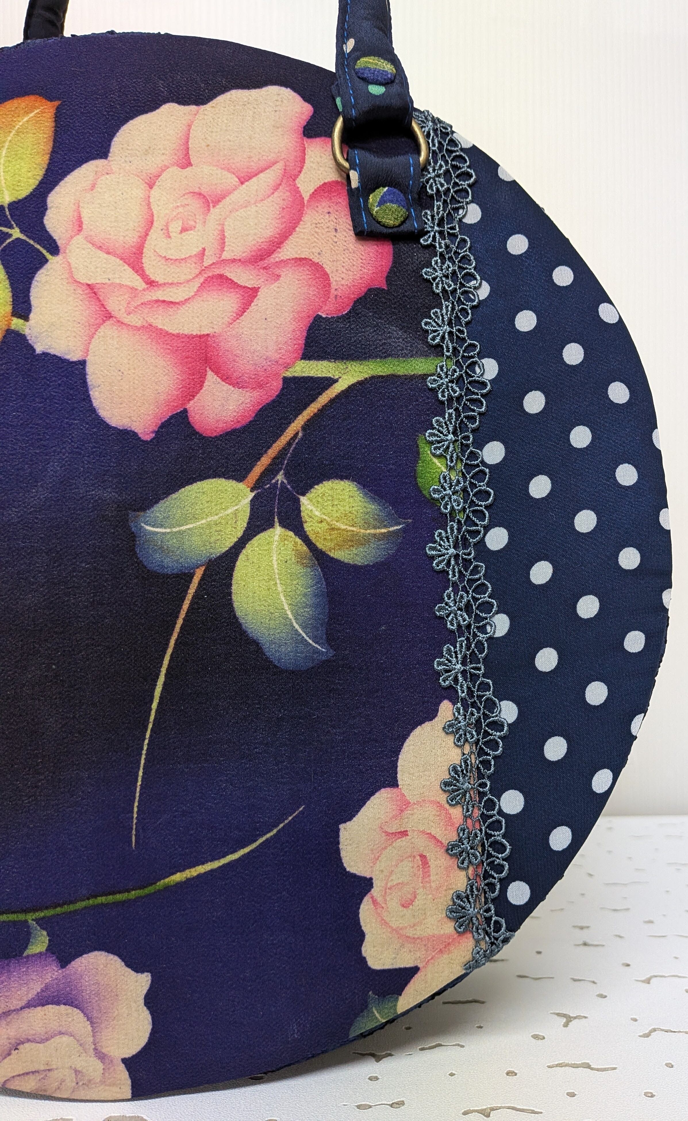 丸型ボストン大 百合と薔薇の着物×紺コードレース