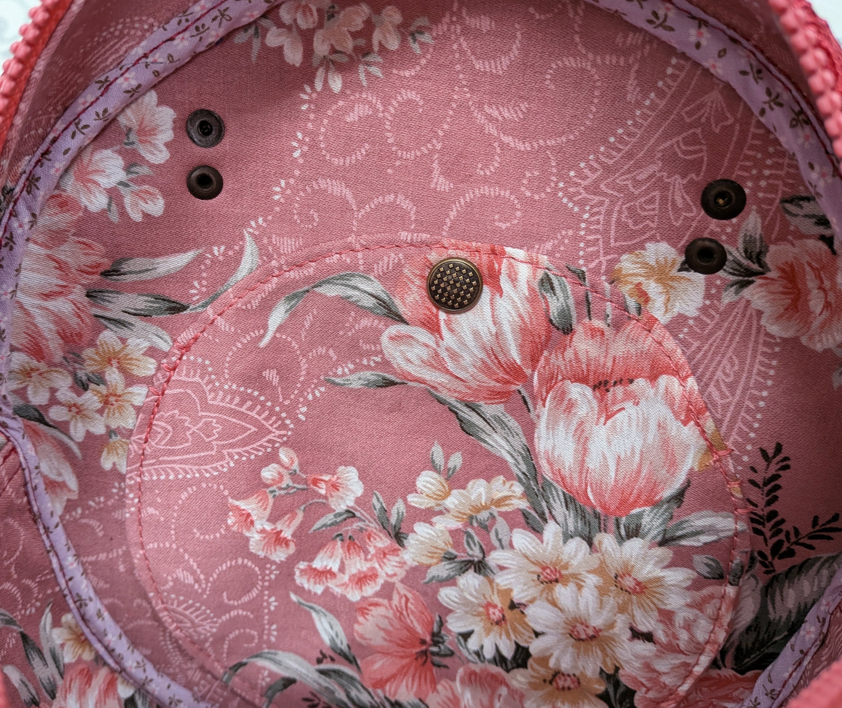 中生地はモーヴピンク地の花柄綿生地。