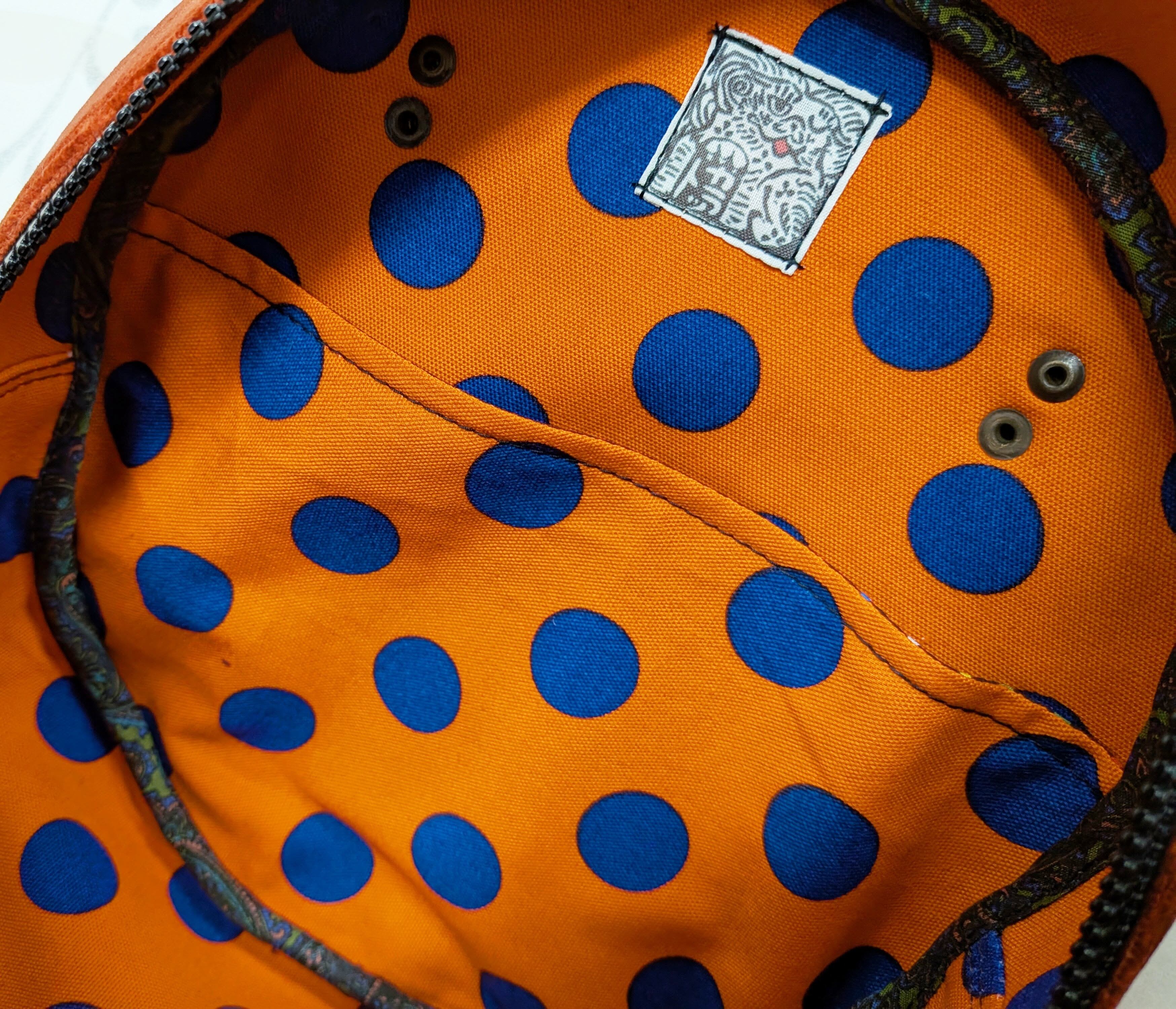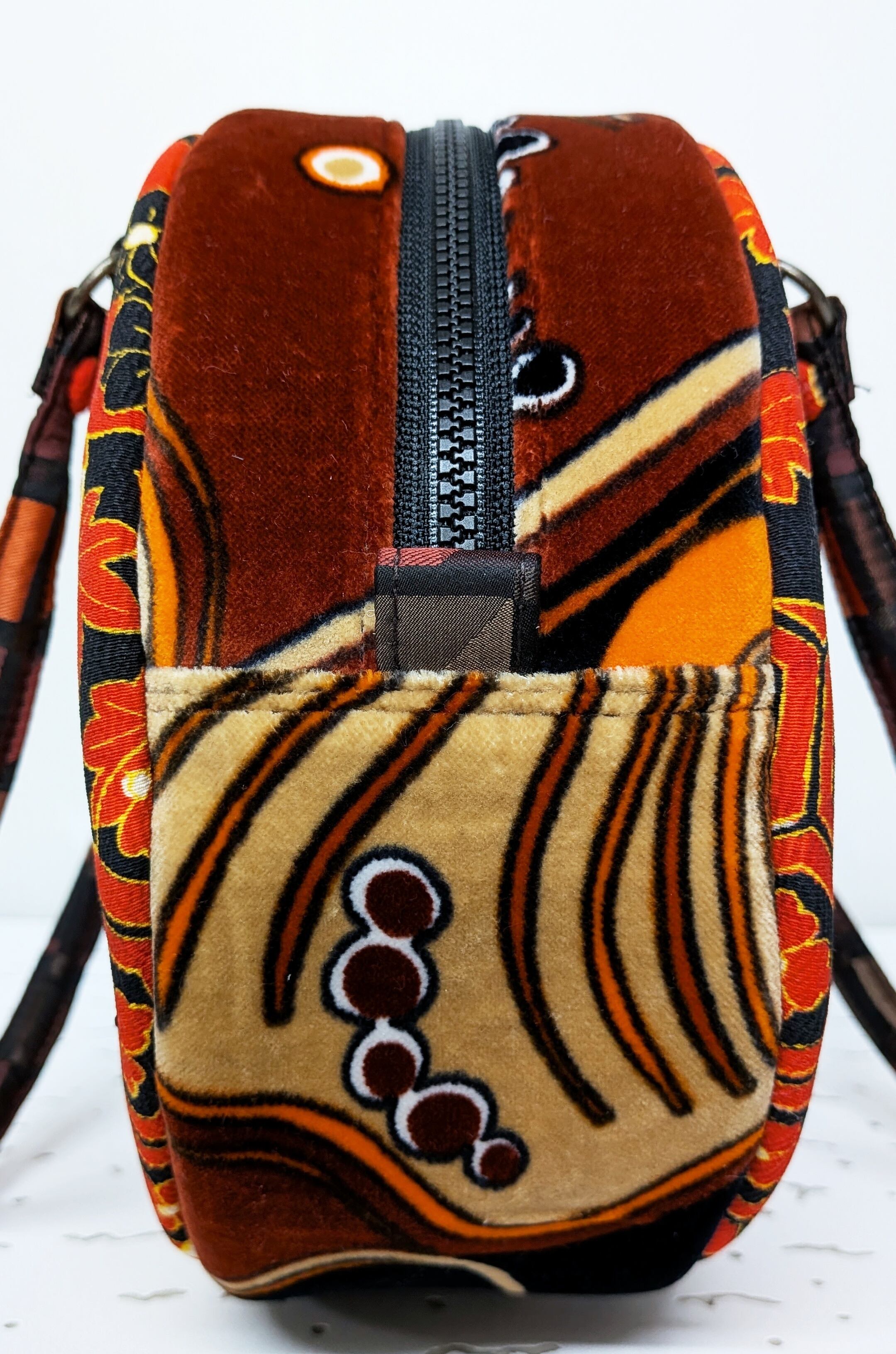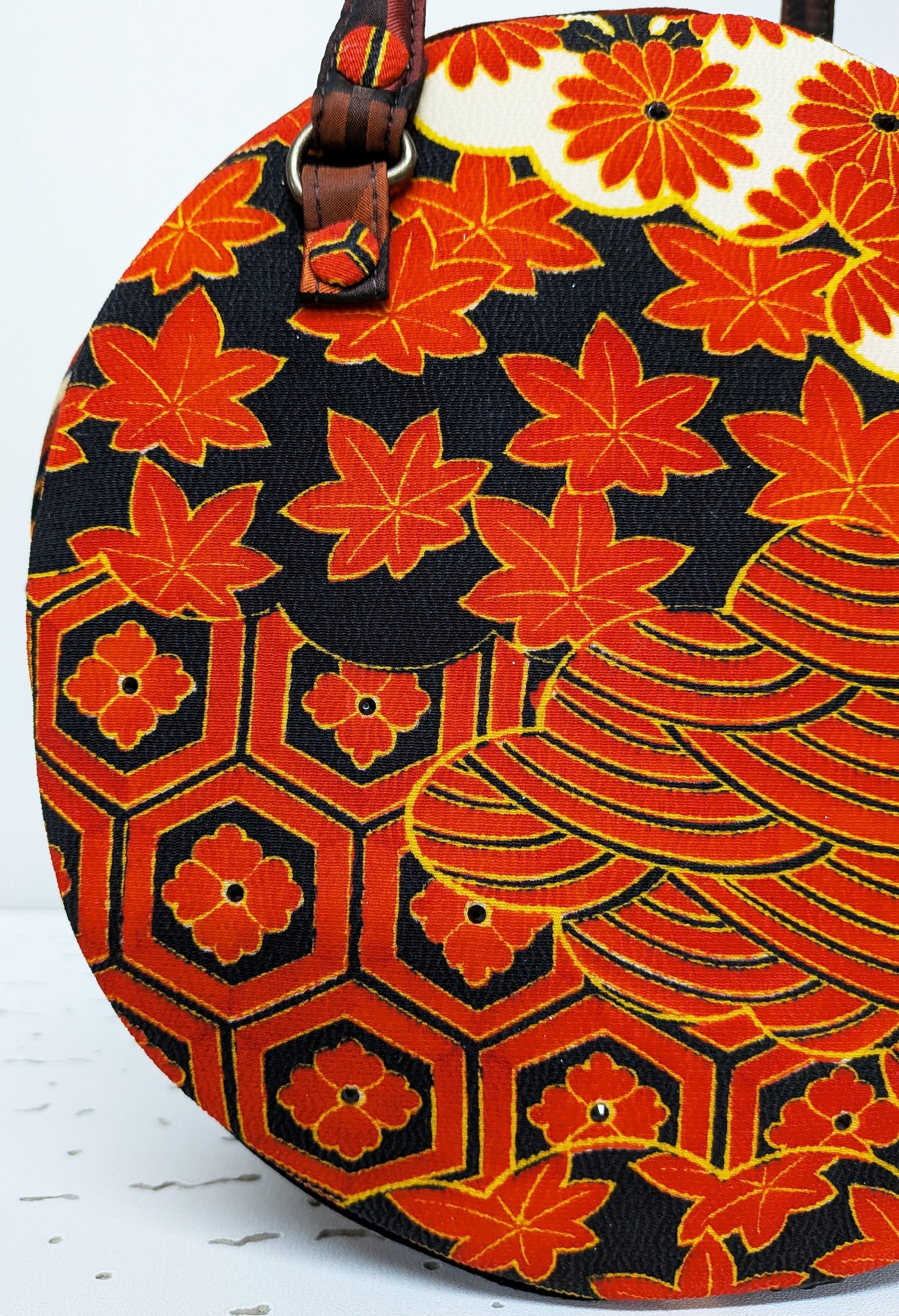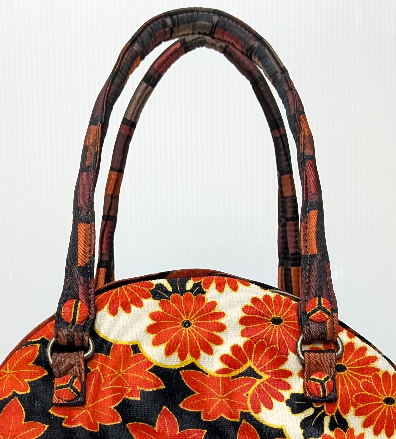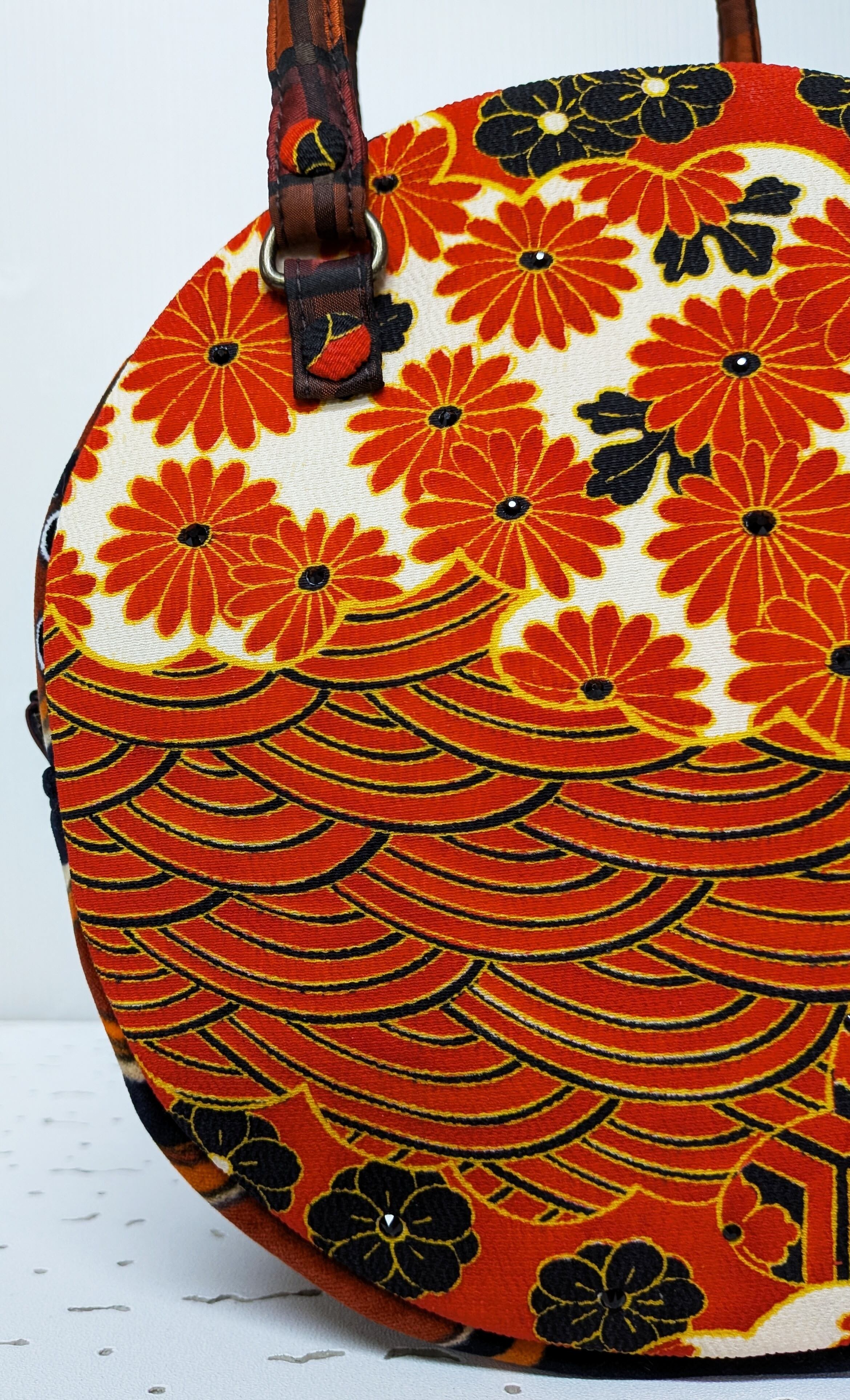 丸型ボストン小 菊紅葉青海波の着物×別珍