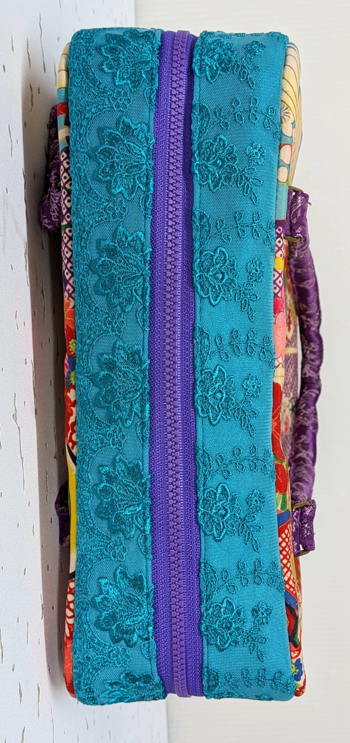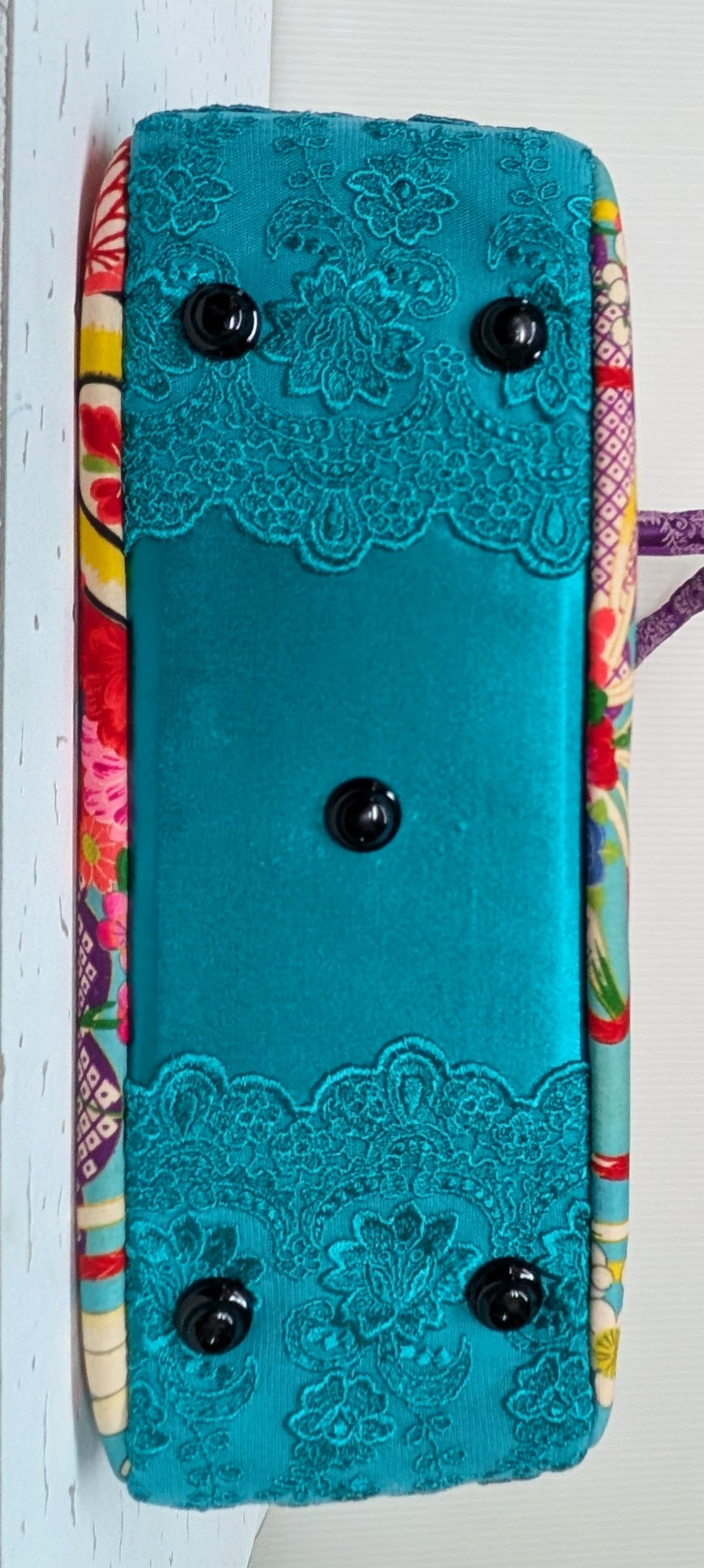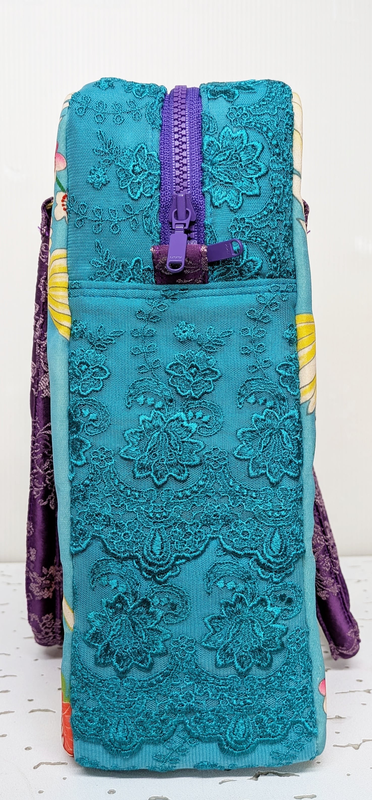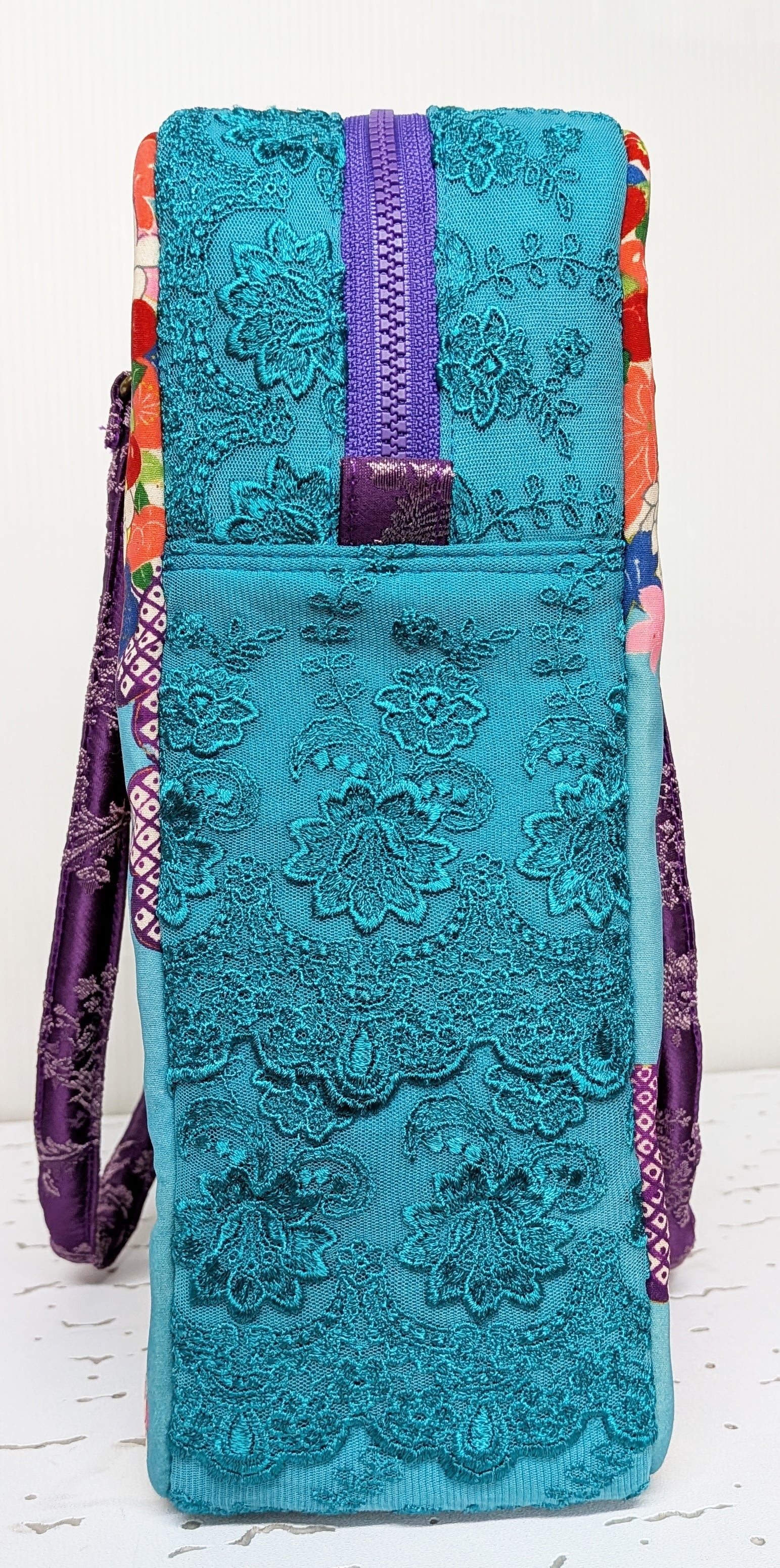 carréバッグ 鳩の着物×ターコイズレース