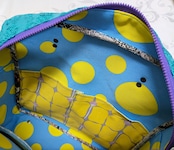 中生地はブルー×黄色水玉。