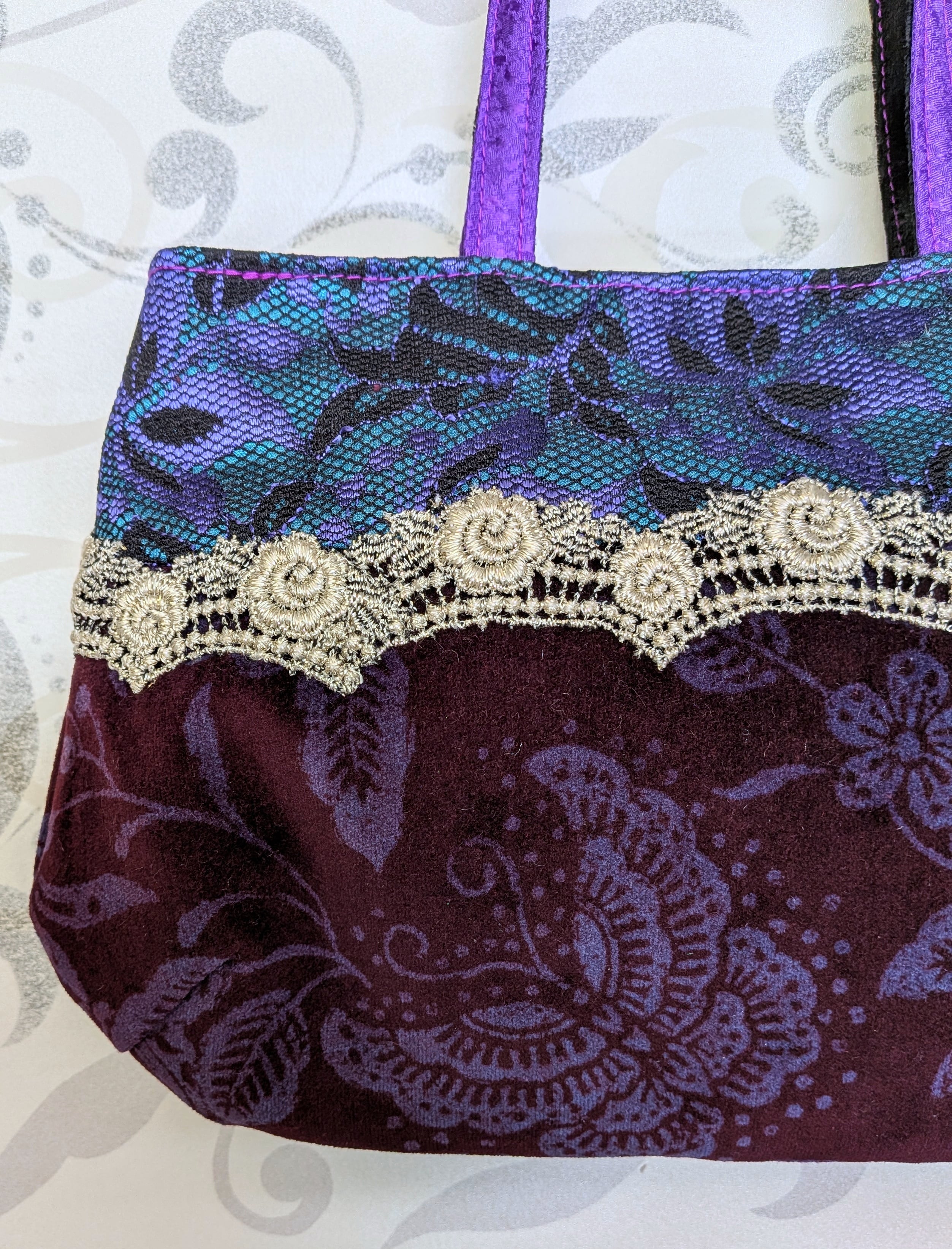 持ち手は明るめ紫と黒ベロア。