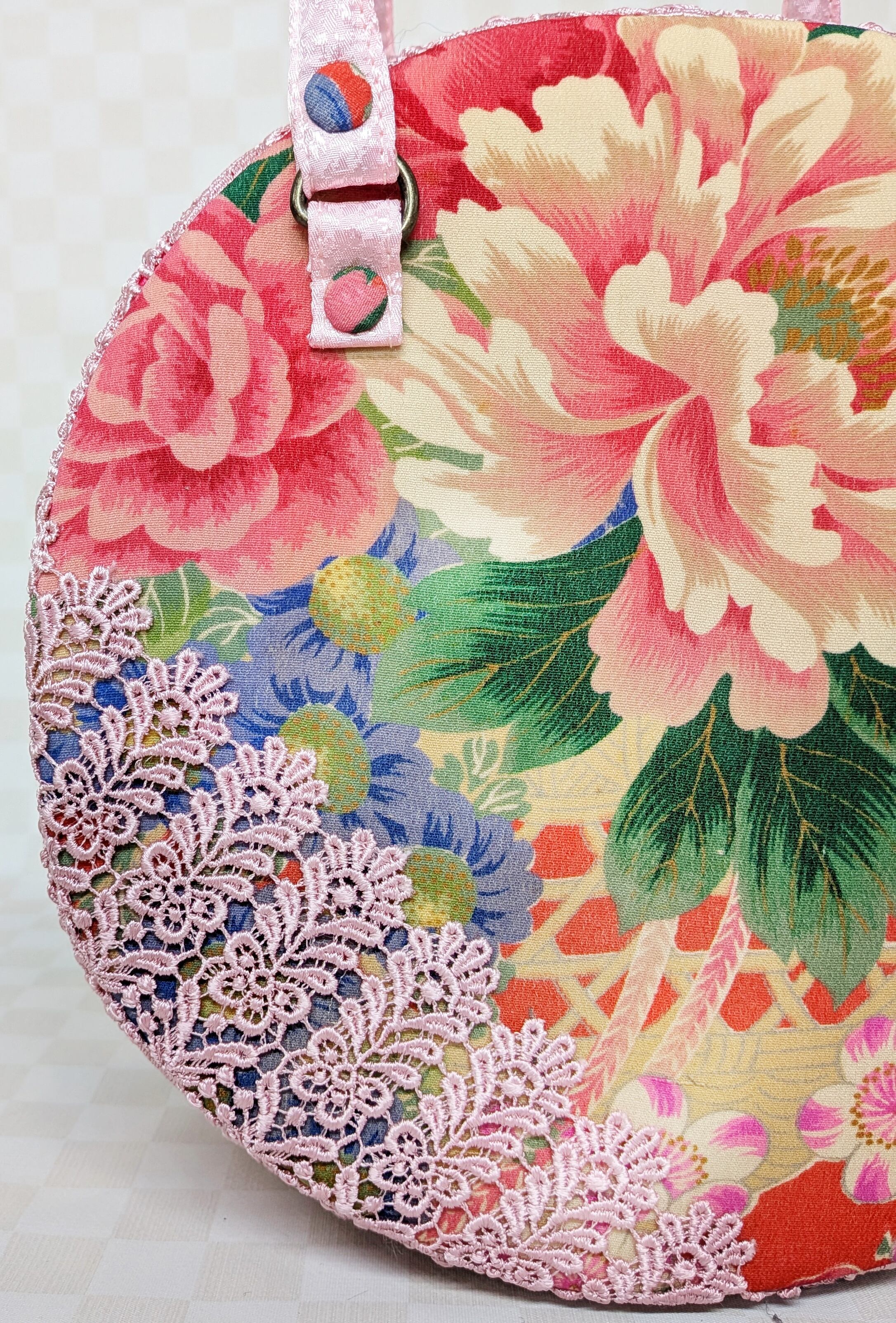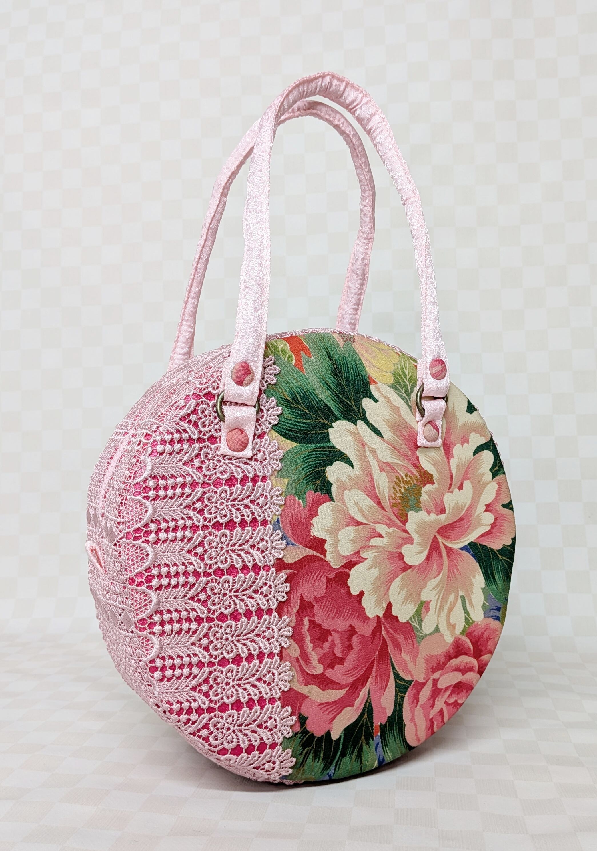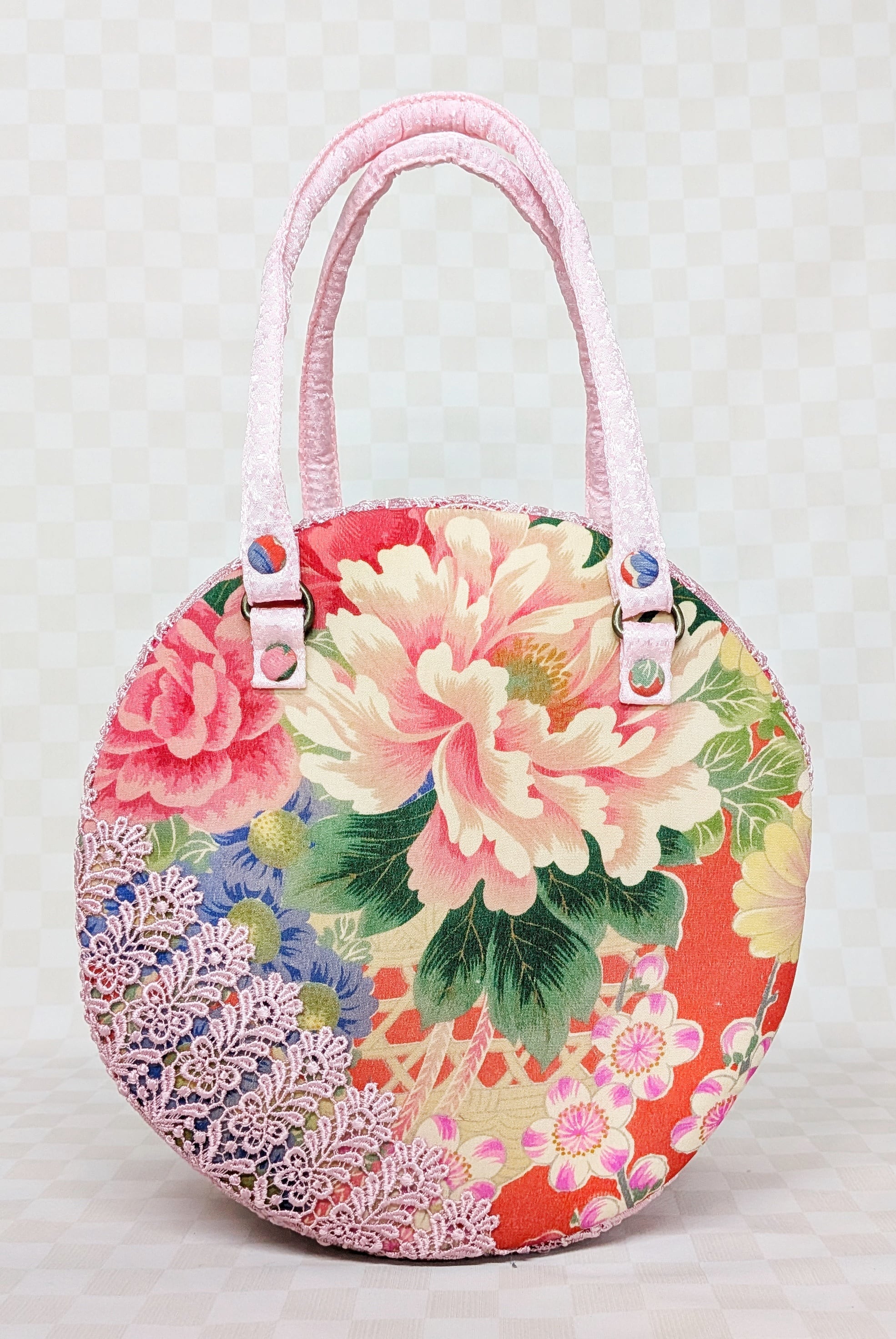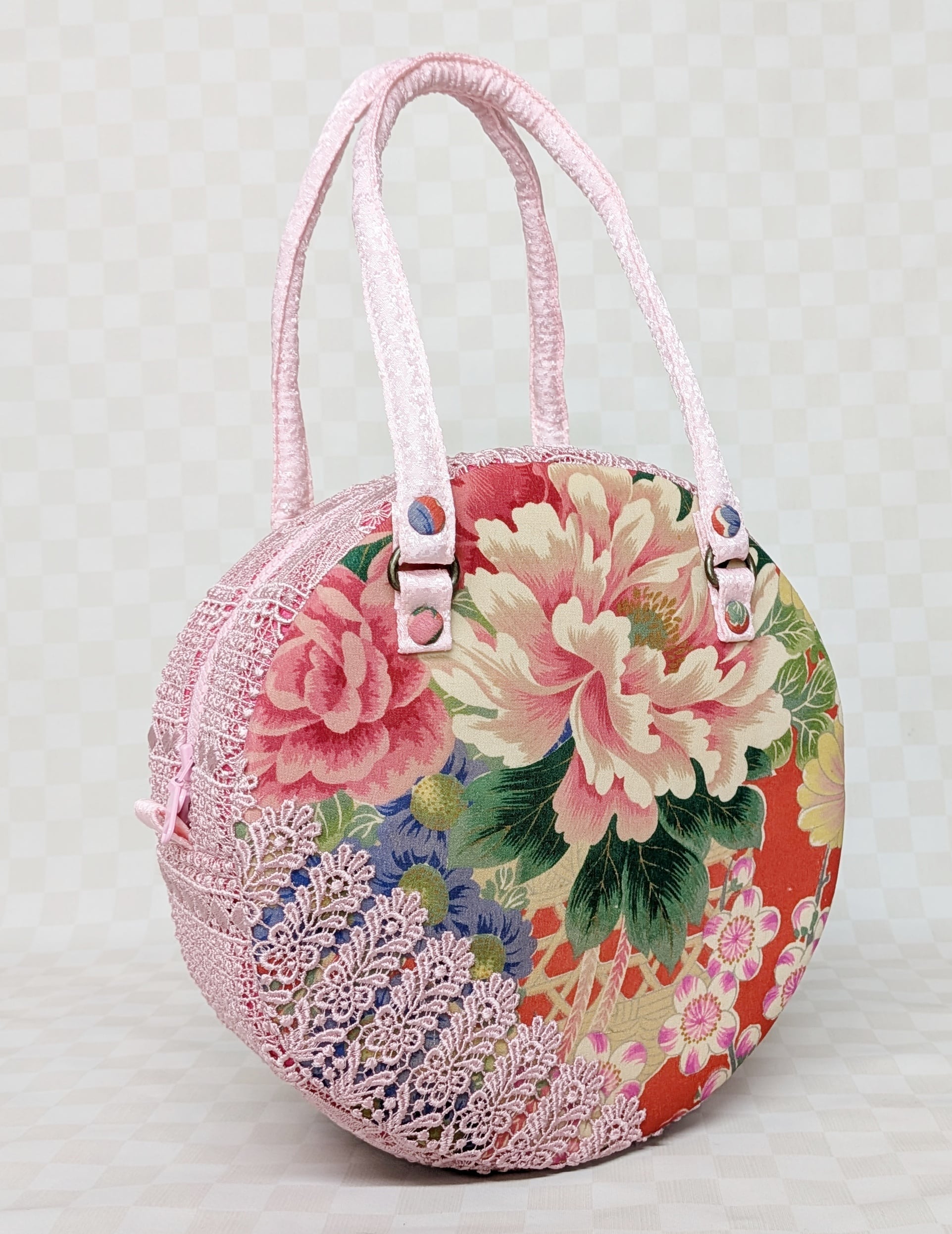 丸型ボストン小 着物花爛漫×昭和ショールレース