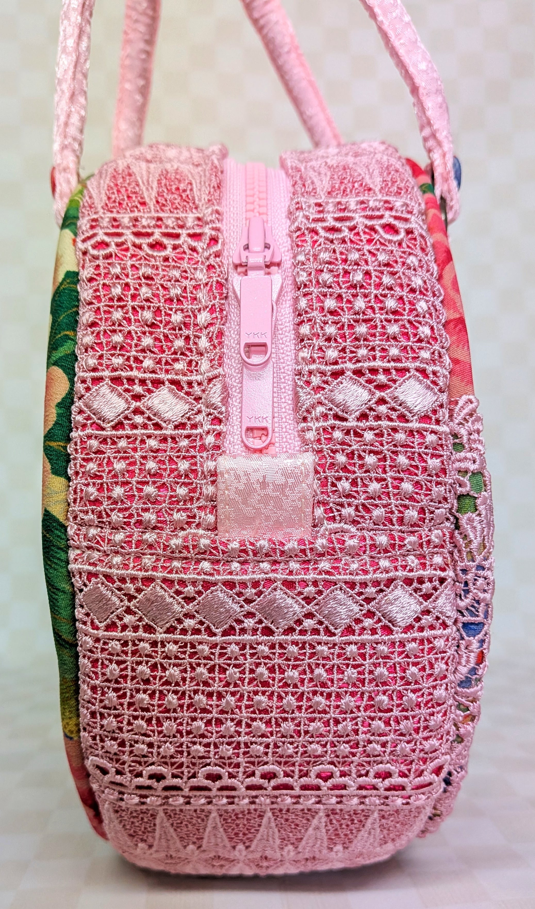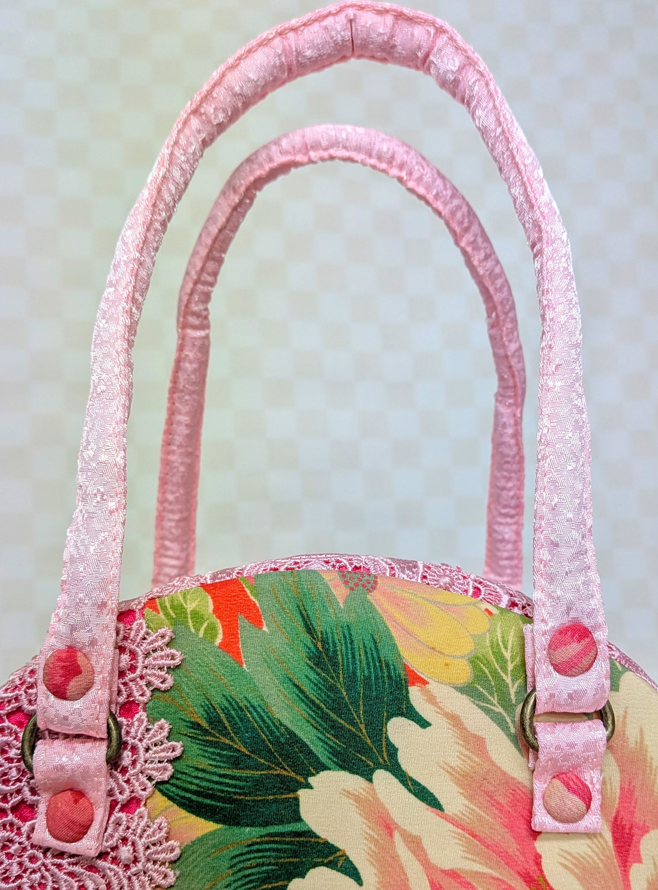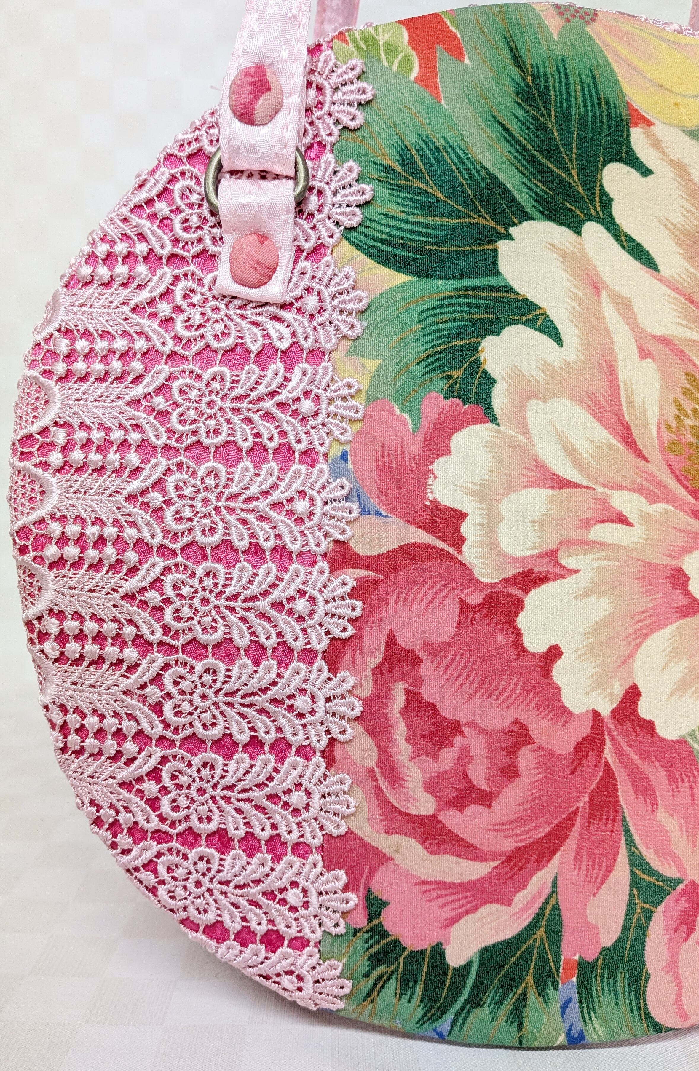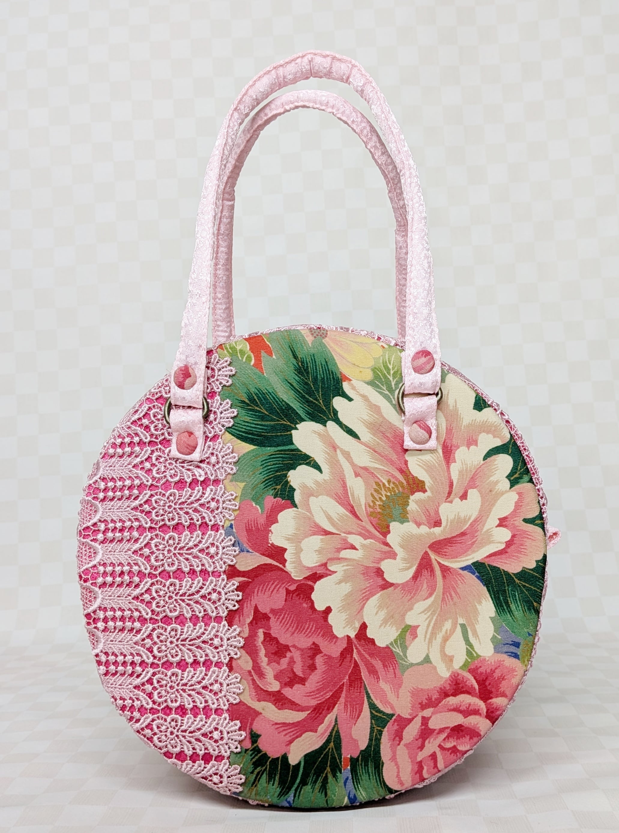 丸型ボストン小 着物花爛漫×昭和ショールレース