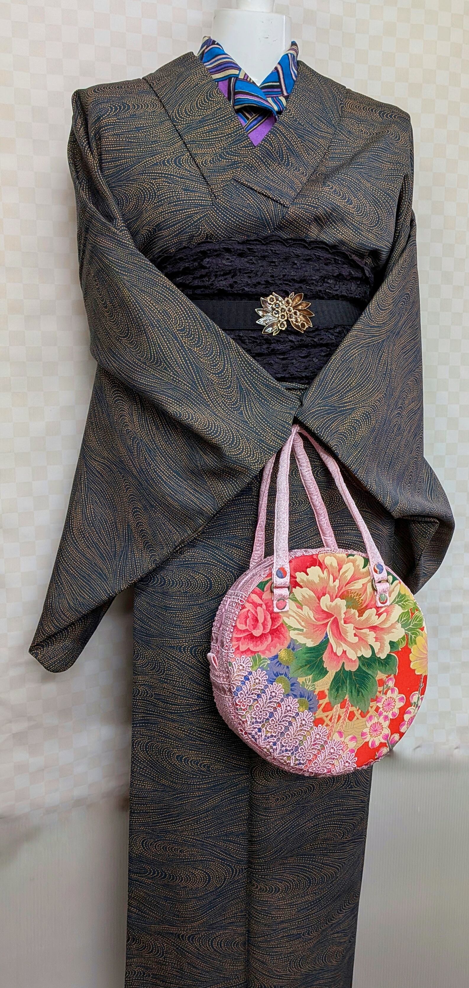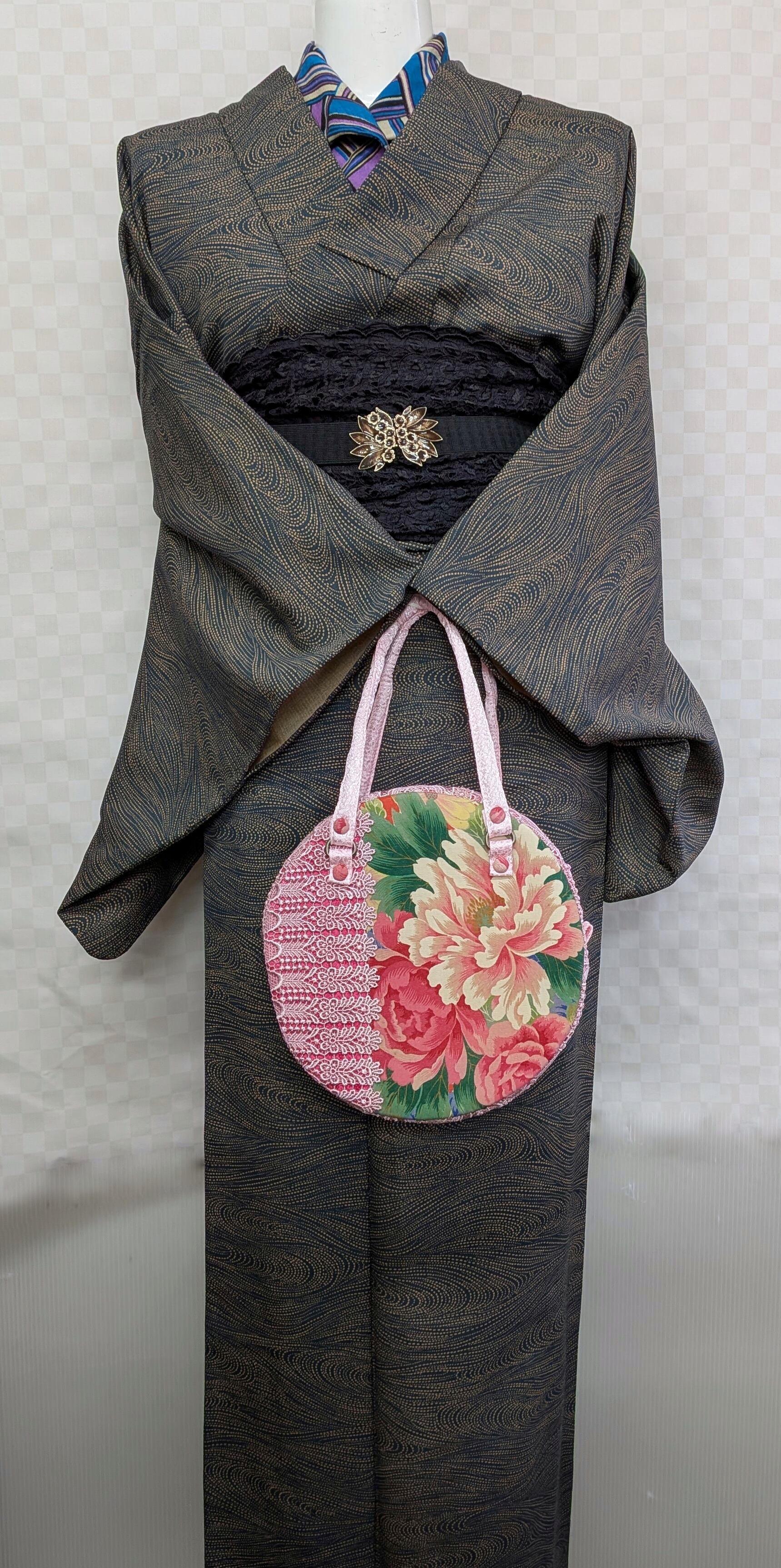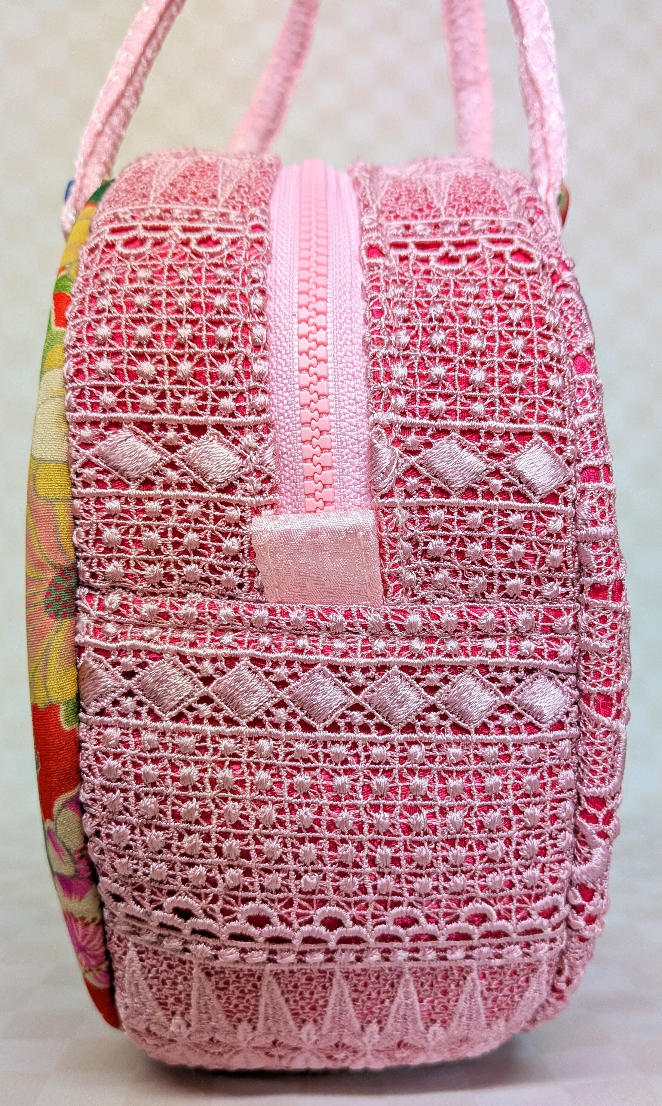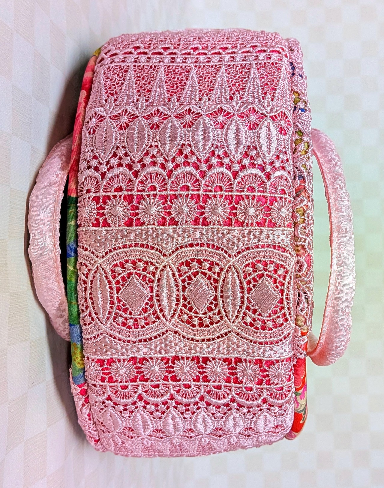 丸型ボストン小 着物花爛漫×昭和ショールレース