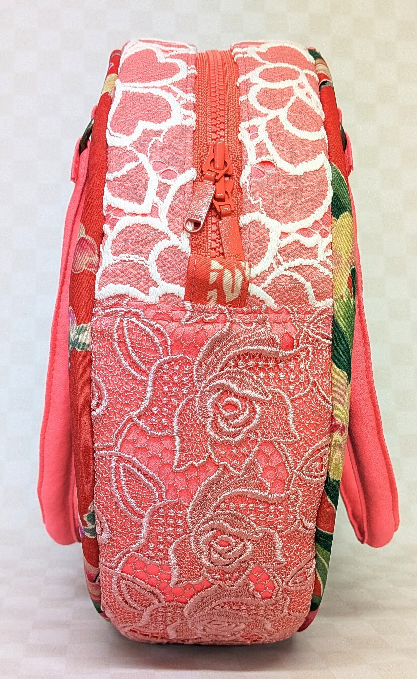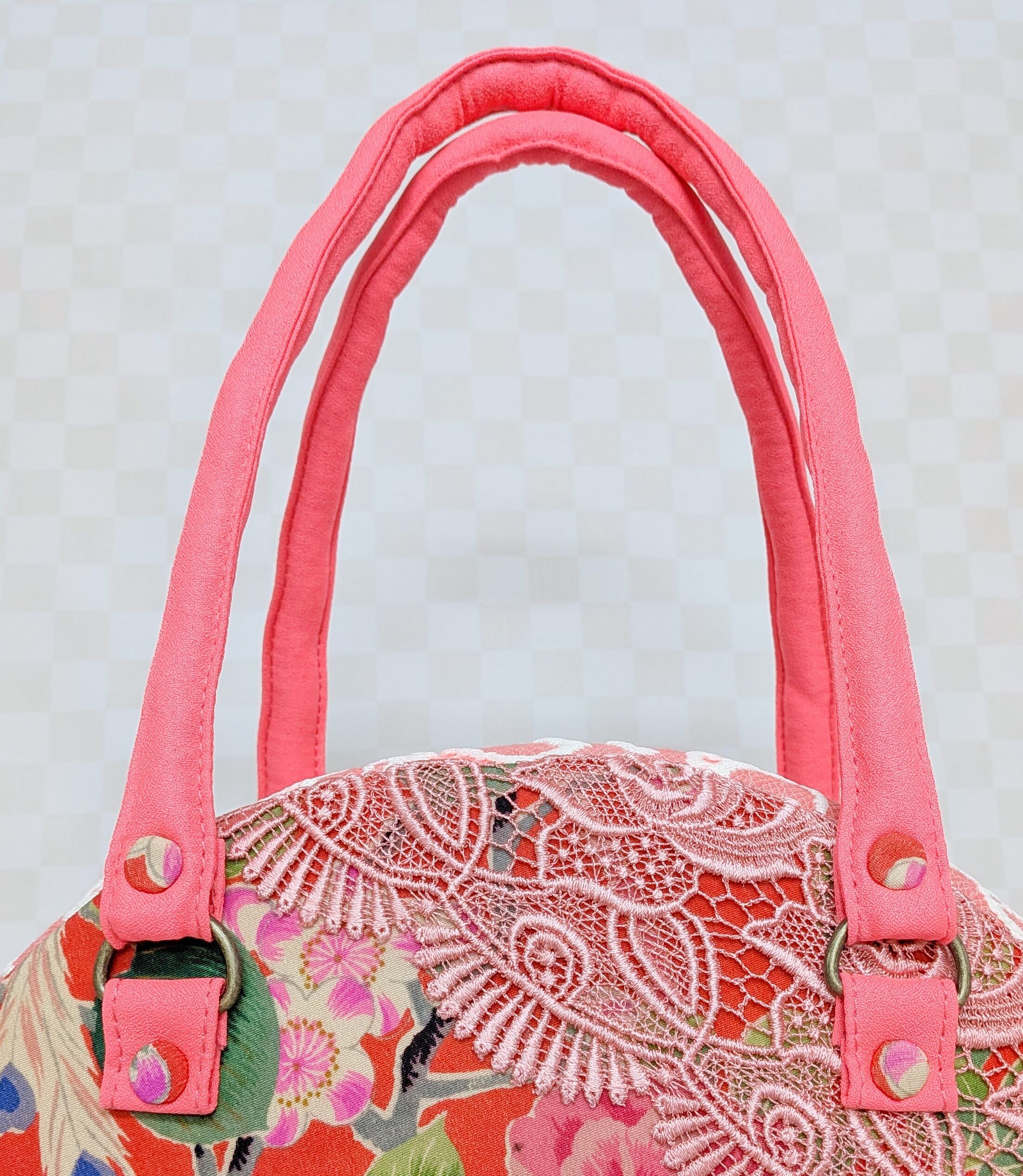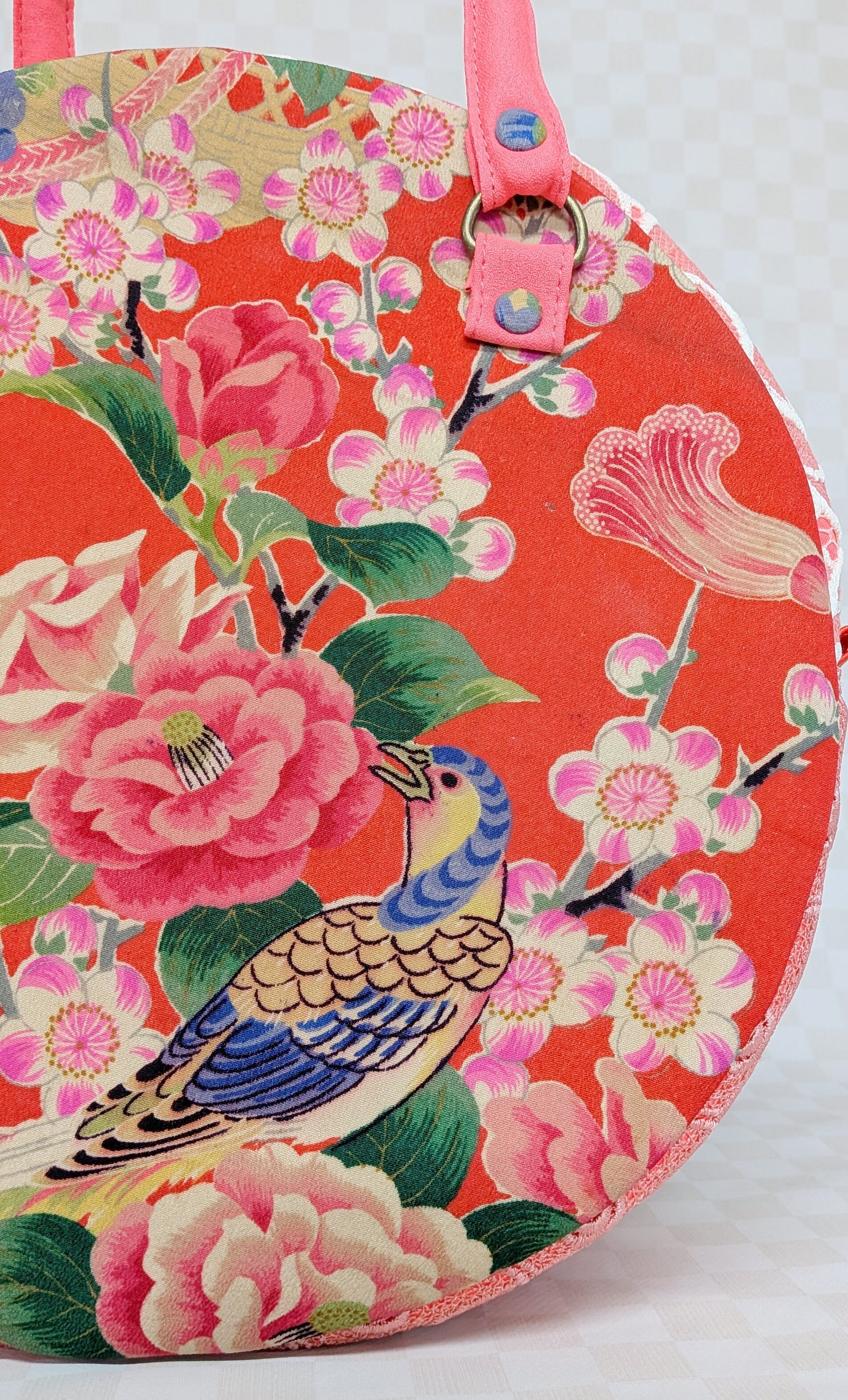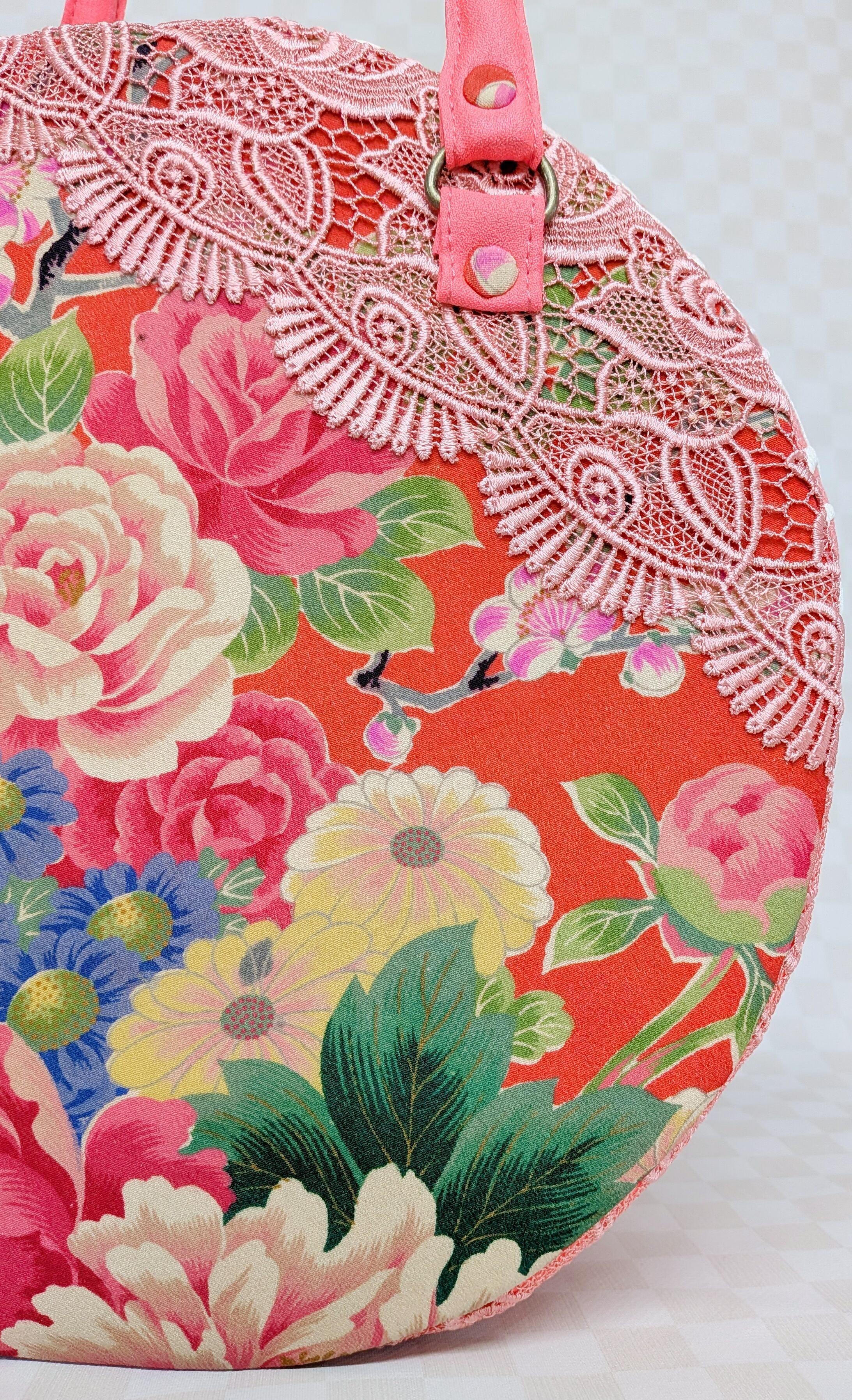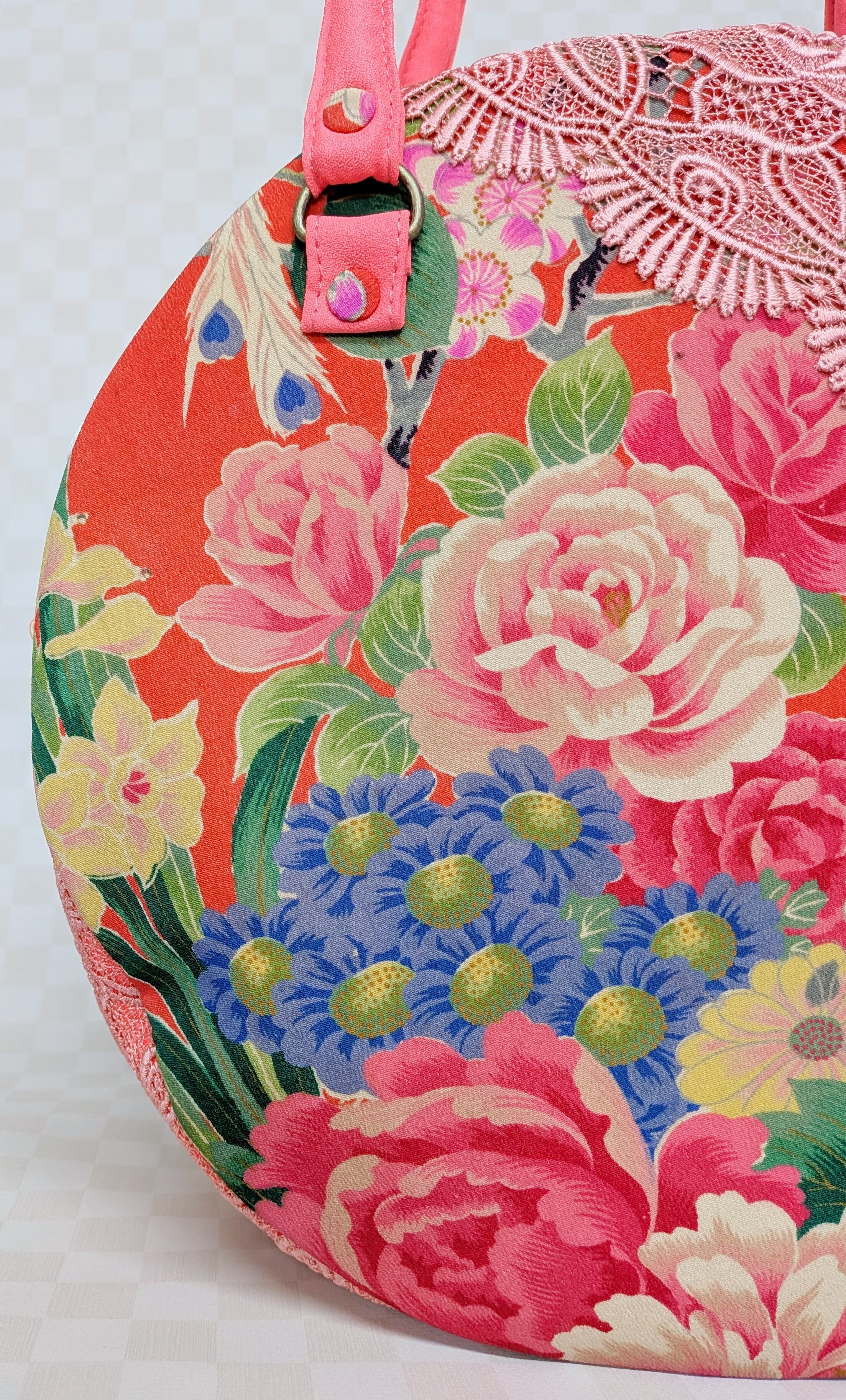 丸型ボストン大 着物孔雀と花×ショールレース